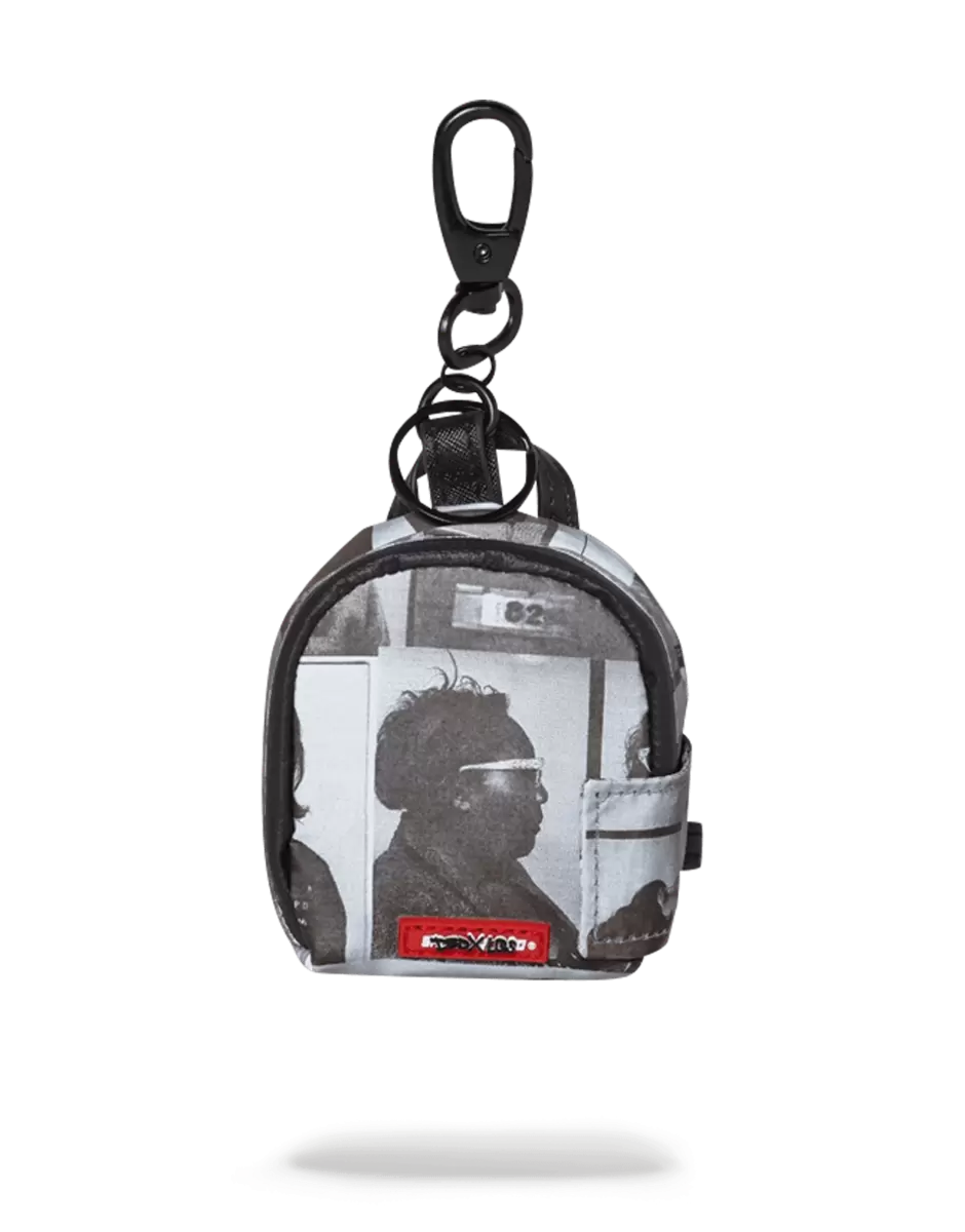 3M reflective backpack keychain from LQS x DBD Collaboration for Scammer Collection. Featuring black and white printed mugshots of powerful women convicted for crimes throughout history.