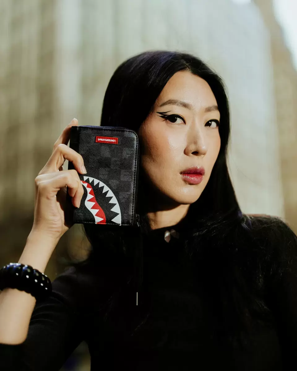 Wallet new shape, 4.5 W x 3.5 L, 5 card slots, zipper closure, id window, bill slot, pocket details