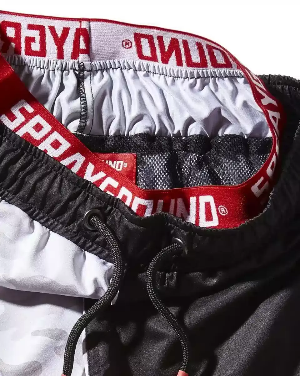 Details:4 way stretch fabric swimsuitSide pocketsInner perforated mesh fabric for comfort and supportVelcro flap back pocket with metal grommetEmbroidered front sharkmouth logDrawstrings with branded tips