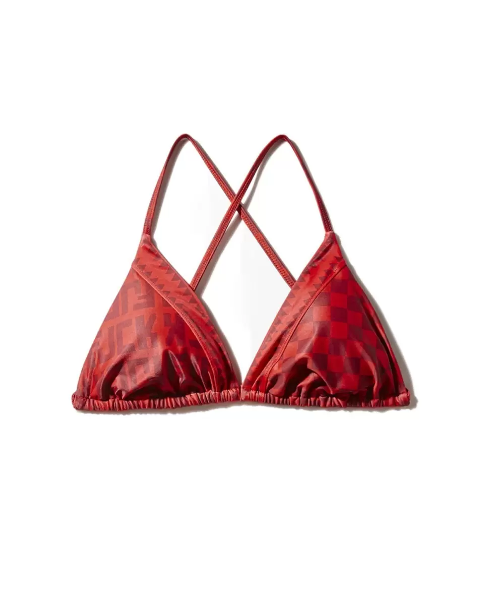 MATERIAL COMPOSITION:83% polyester 17% elastaneFeatures:Vertical Sharkmouth printed contrast bandSelf spaghetti straps for tiesAdjustable straps at backsideConvertible straps at backside for criss cross or straight displayRemovable bra cups