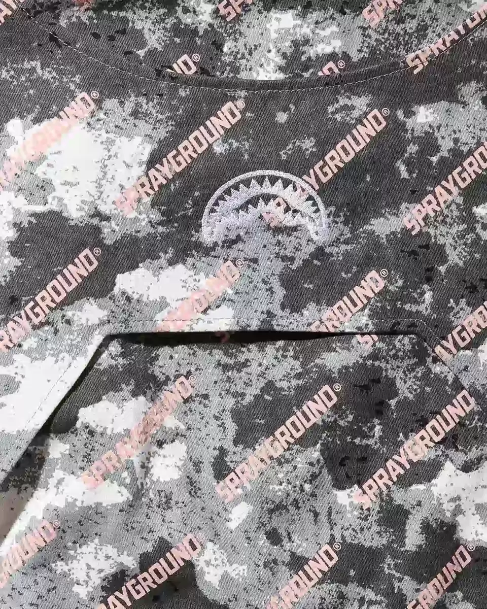 MATERIAL COMPOSITION 100% COTTON FEATURES Button front closureDouble yoke at front and back with chest pocketSprayground Camouflage printSignature shark mouth a