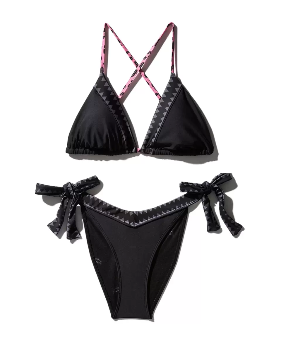 MATERIAL COMPOSITION:83% polyester 17% elastaneFeatures:Vertical Sharkmouth printed contrast bandFunctional VSM side tiesV front and back waistband