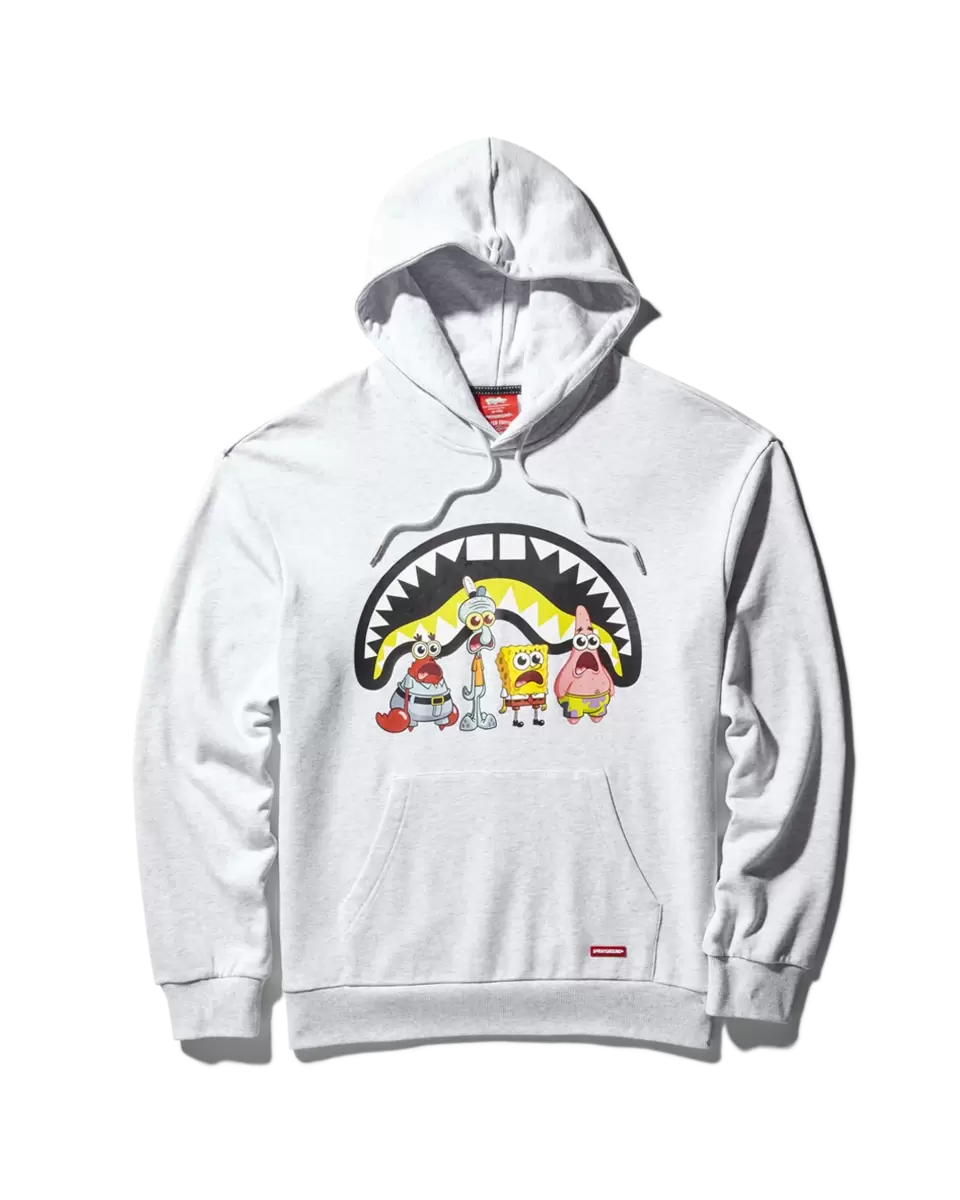 Front kangaroo pocketHoodie pullover with drawstring and metal tipSprayground offset logo chenille embroidery patch at chest frontSprayground signature rubber emblem logo at front hemVertical shark mouth tape at inside back neck