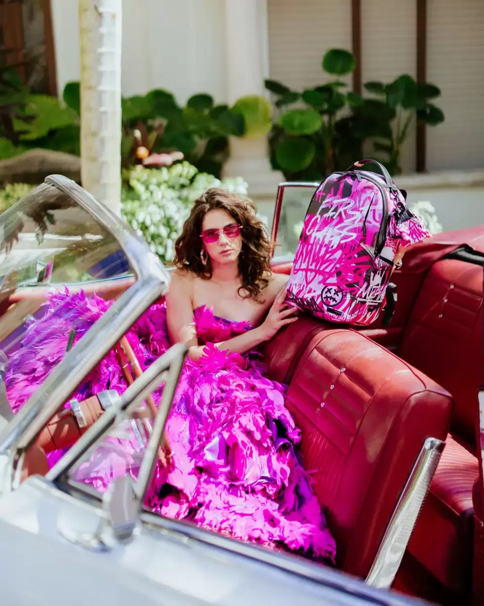 Dimensions: 18″ x 6″ x 11.5″ Front zipper pocket Side pockets Zippered Stash pocket Separate velour sunglass compartment Ergonomic mesh back padding Adjustable Straps for custom sizing Gold zippers with metal hardware Metal “Sprayground Authentic” badge Slide through back sleeve connects to carry-on luggage to free your hands