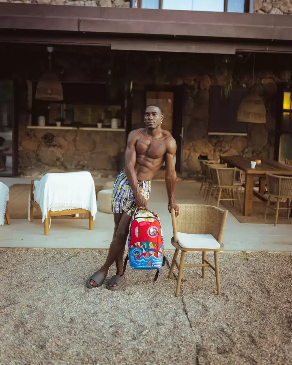 Dimensions: 18″ x 6″ x 11.5″ Front zipper pocket Side pockets Zippered Stash pocket Separate velour sunglass compartment Ergonomic mesh back padding Adjustable Straps for custom sizing Green zippers with metal hardware Metal “Sprayground Authentic” badge Slide through back sleeve connects to carry on luggage to free your hands