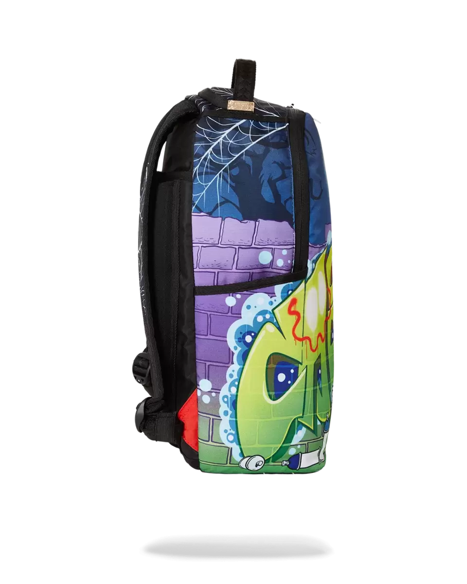 Dimensions: 18″ x 6″ x 11.5″ Front zipper pocket Side pockets Zippered Stash pocket Separate velour sunglass compartment Ergonomic mesh back padding Adjustable Straps for custom sizing Gold zippers with metal hardware Metal “Sprayground Authentic” badge Slide through back sleeve connects to carry-on luggage to free your hands