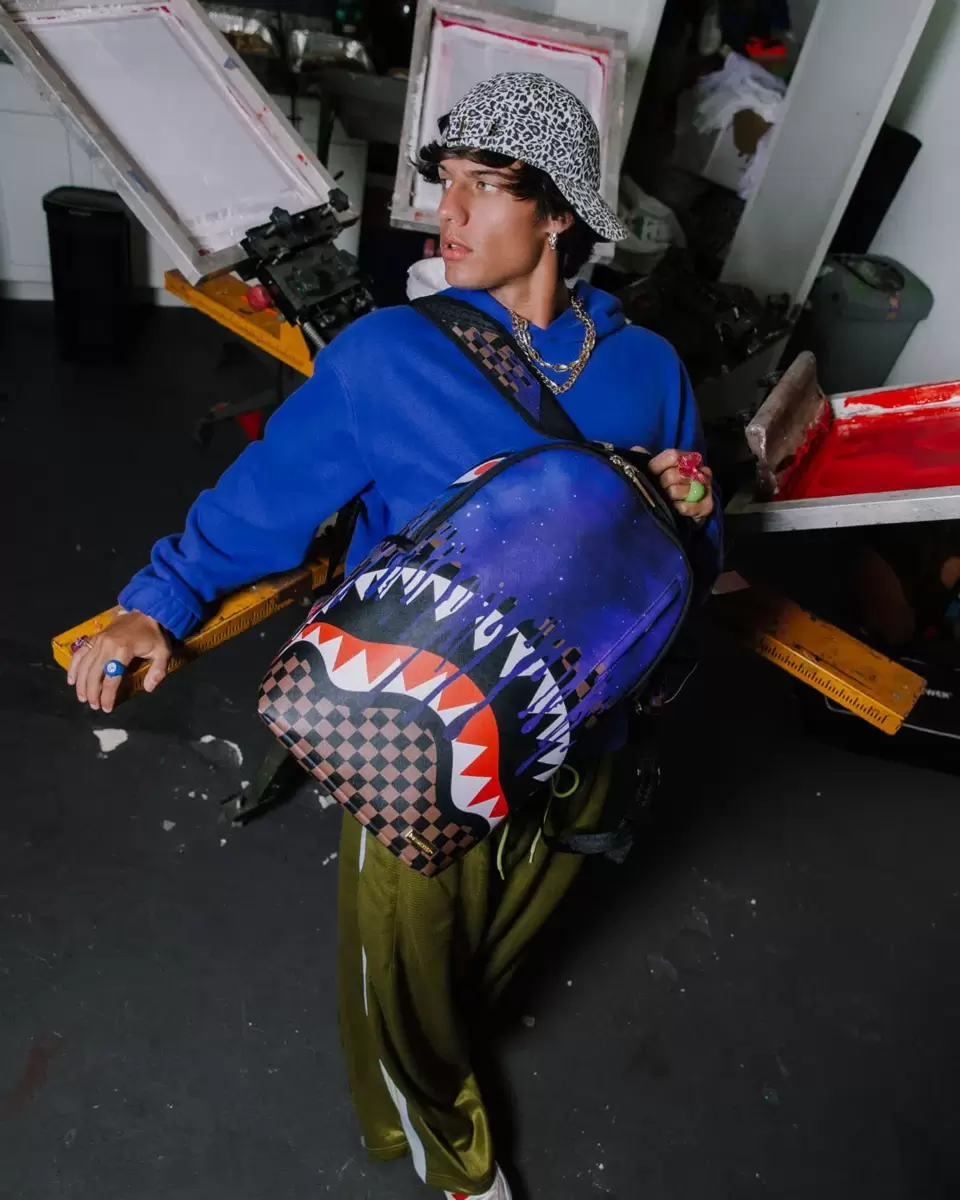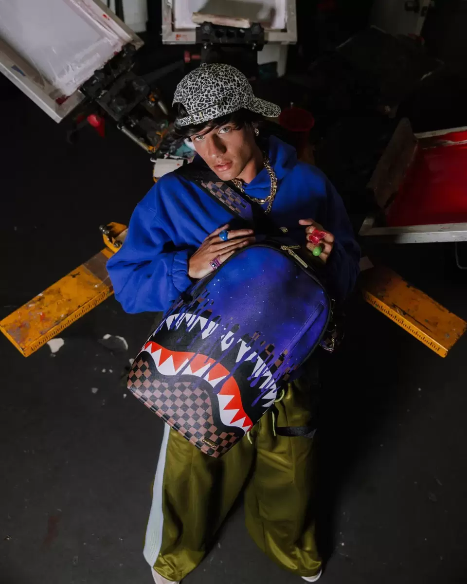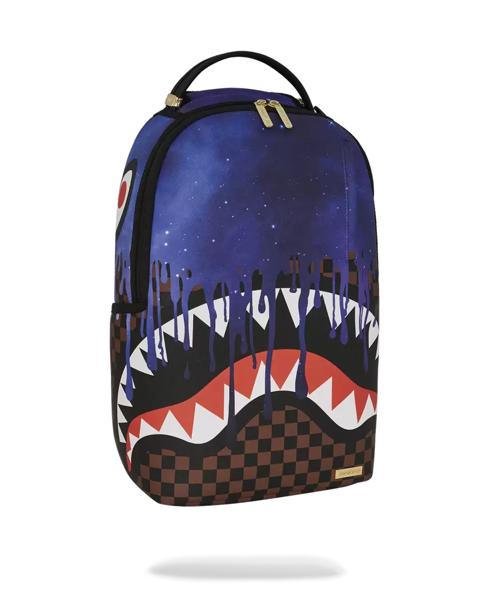 Dimensions: 18″ x 6″ x 11.5″ Front zipper pocket Side pockets Zippered Stash pocket Separate velour sunglass compartment Ergonomic mesh back padding Adjustable Straps for custom sizing Gold zippers with metal hardware Metal “Sprayground Authentic” badge Slide through back sleeve connects to carry-on luggage to free your hands