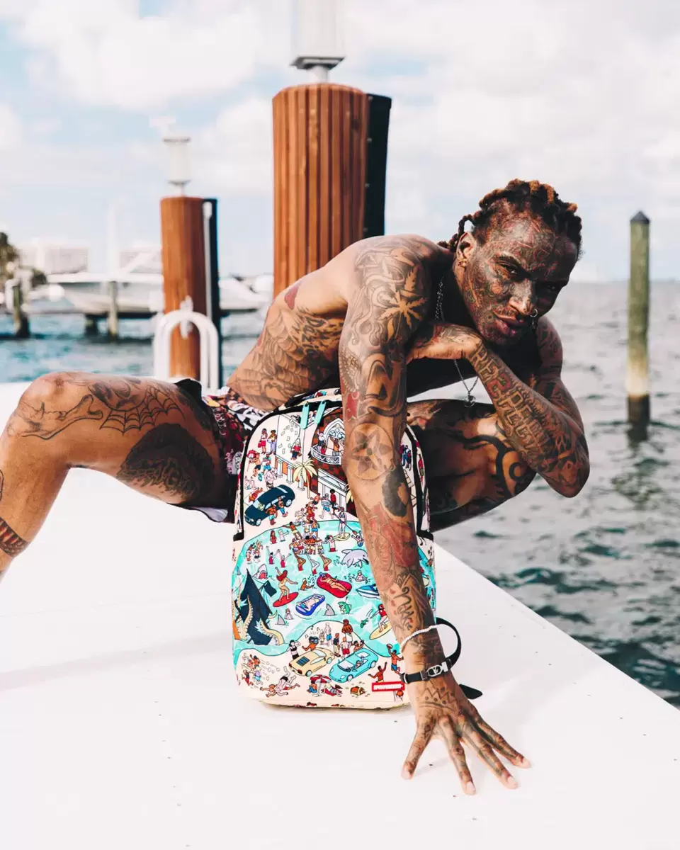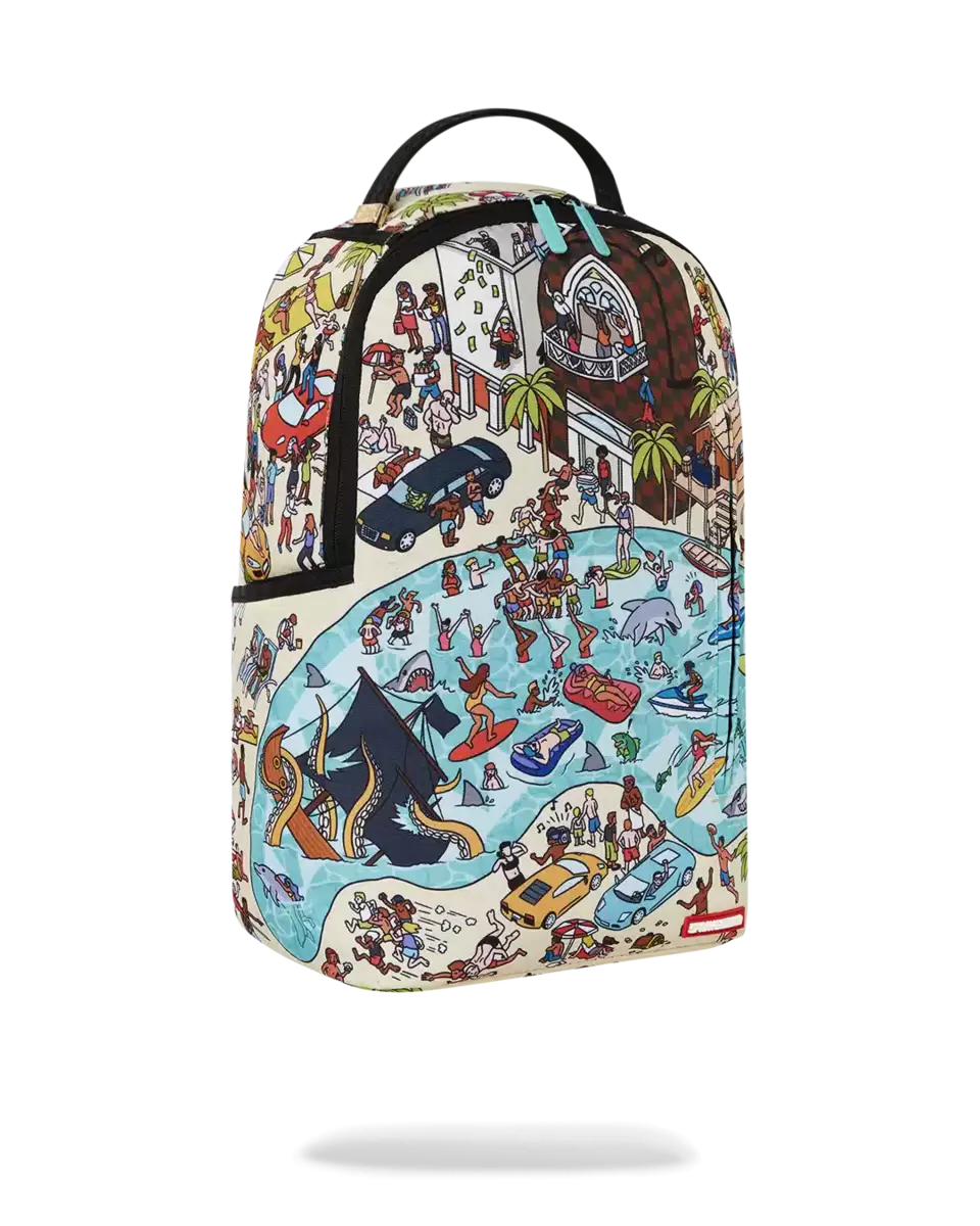 Dimensions: 18″ x 6″ x 11.5″ Front zipper pocket Side pockets Zippered Stash pocket Separate velour sunglass compartment Ergonomic mesh back padding Adjustable Straps for custom sizing Gold zippers with metal hardware Metal “Sprayground Authentic” badge Slide through back sleeve connects to carry-on luggage to free your hands