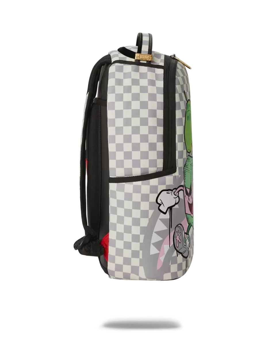 Dimensions: 18″ x 6″ x 11.5″ Front zipper pocket Side pockets Zippered Stash pocket Separate velour sunglass compartment Ergonomic mesh back padding Adjustable Straps for custom sizing Gold zippers with metal hardware Metal “Sprayground Authentic” badge Slide through back sleeve connects to carry-on luggage to free your hands