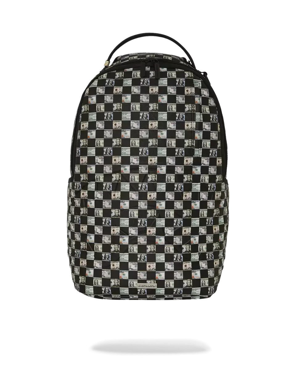 Dimensions: 18″ x 6″ x 11.5″ Front zipper pocket Side pockets Zippered Stash pocket Separate velour sunglass compartment Ergonomic mesh back padding Adjustable Straps for custom sizing Gold zippers with metal hardware Metal “Sprayground Authentic” badge Slide through back sleeve connects to carry-on luggage to free your hands