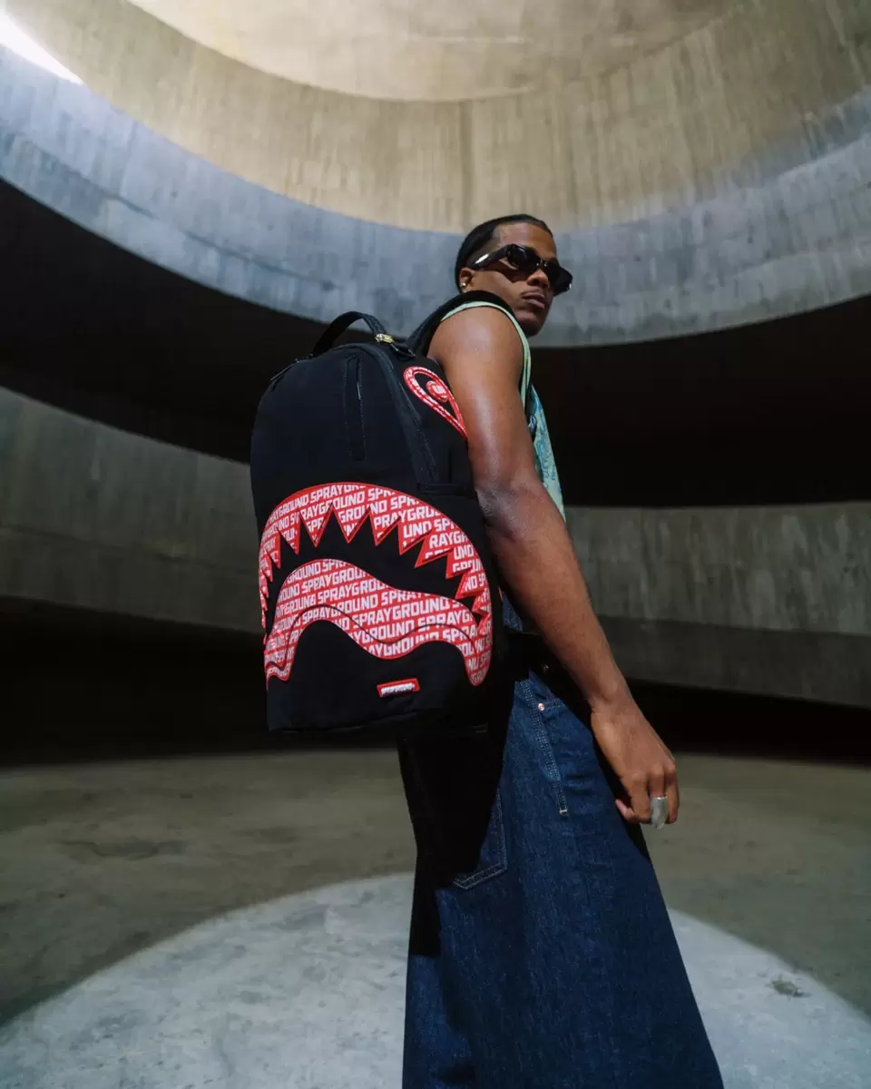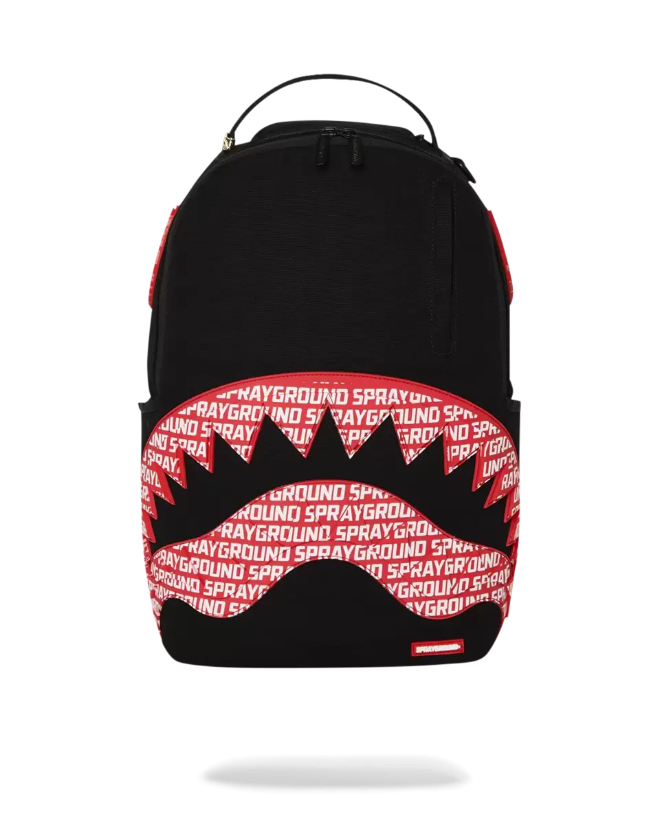 Cotton backpack featuring rubber mouth and eyes with Sprayground repeat pattern
