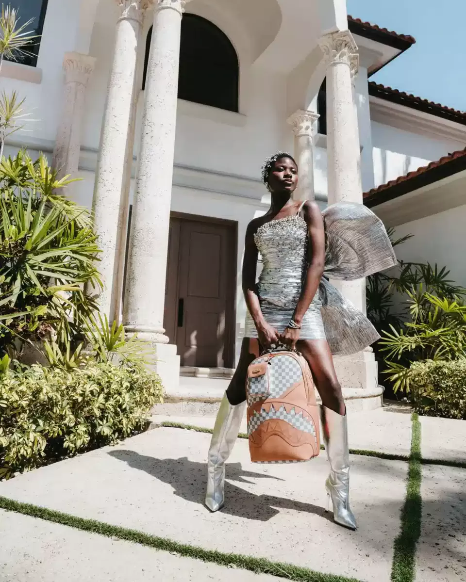 Dimensions: 18″ x 6″ x 11.5″ Front zipper pocket Side pockets Zippered Stash pocket Separate velour sunglass compartment Ergonomic mesh back padding Adjustable Straps for custom sizing Gold zippers with metal hardware Metal “Sprayground Authentic” badge Slide through back sleeve connects to carry-on luggage to free your hands