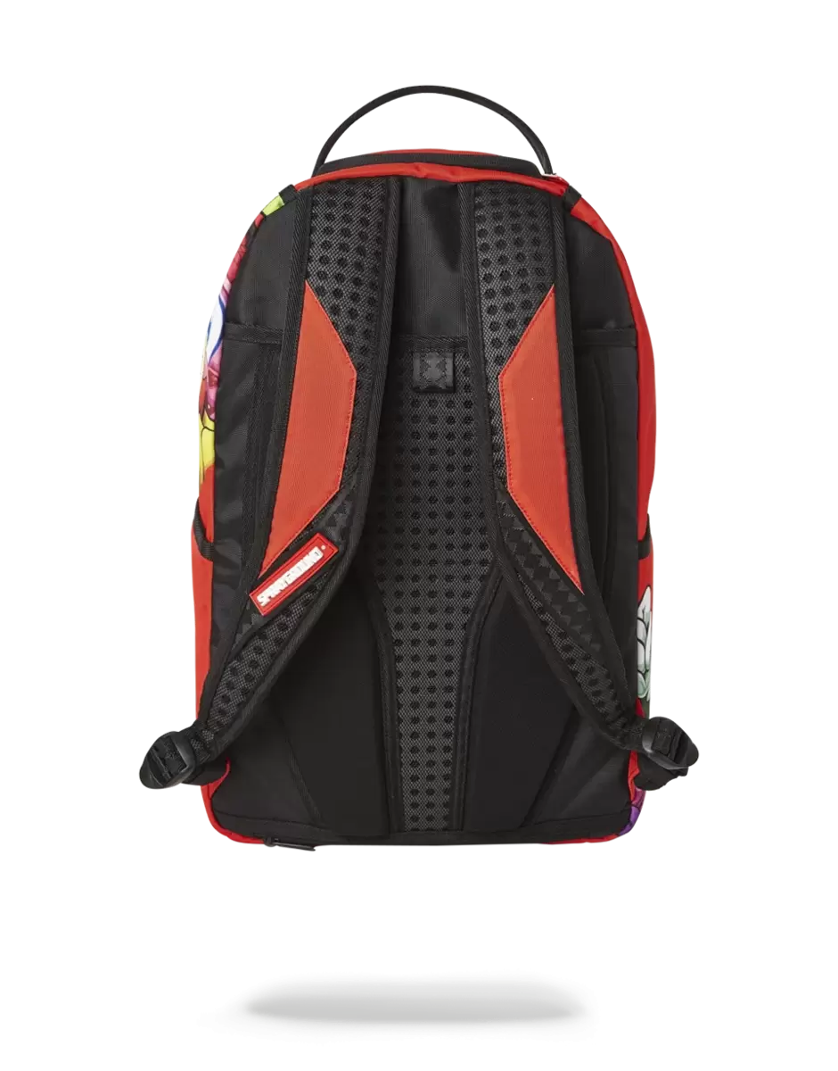 Dimensions: 18″ x 6″ x 11.5″ Front zipper pocket Side pockets Zippered Stash pocket Separate velour sunglass compartment Ergonomic mesh back padding Adjustable Straps for custom sizing Red zippers with metal hardware Metal “Sprayground Authentic” badge Slide through back sleeve connects to carry-on luggage to free your hands