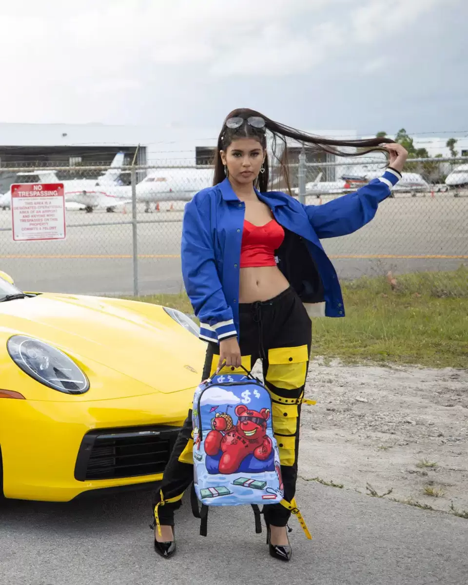 Dimensions: 18″ x 6″ x 11.5″ Front zipper pocket Side pockets Zippered Stash pocket Separate velour sunglass compartment Ergonomic mesh back padding Adjustable Straps for custom sizing Green zippers with metal hardware Metal “Sprayground Authentic” badge Slide through back sleeve connects to carry on luggage to free your hands