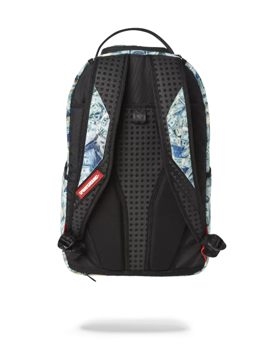 Dimensions: 18″ x 6″ x 11.5″ Front zipper pocket Side pockets Zippered Stash pocket Separate velour sunglass compartment Ergonomic mesh back padding Adjustable Straps for custom sizing Silver zippers with metal hardware Metal “Sprayground Authentic” badge Slide through back sleeve connects to carry-on luggage to free your hands