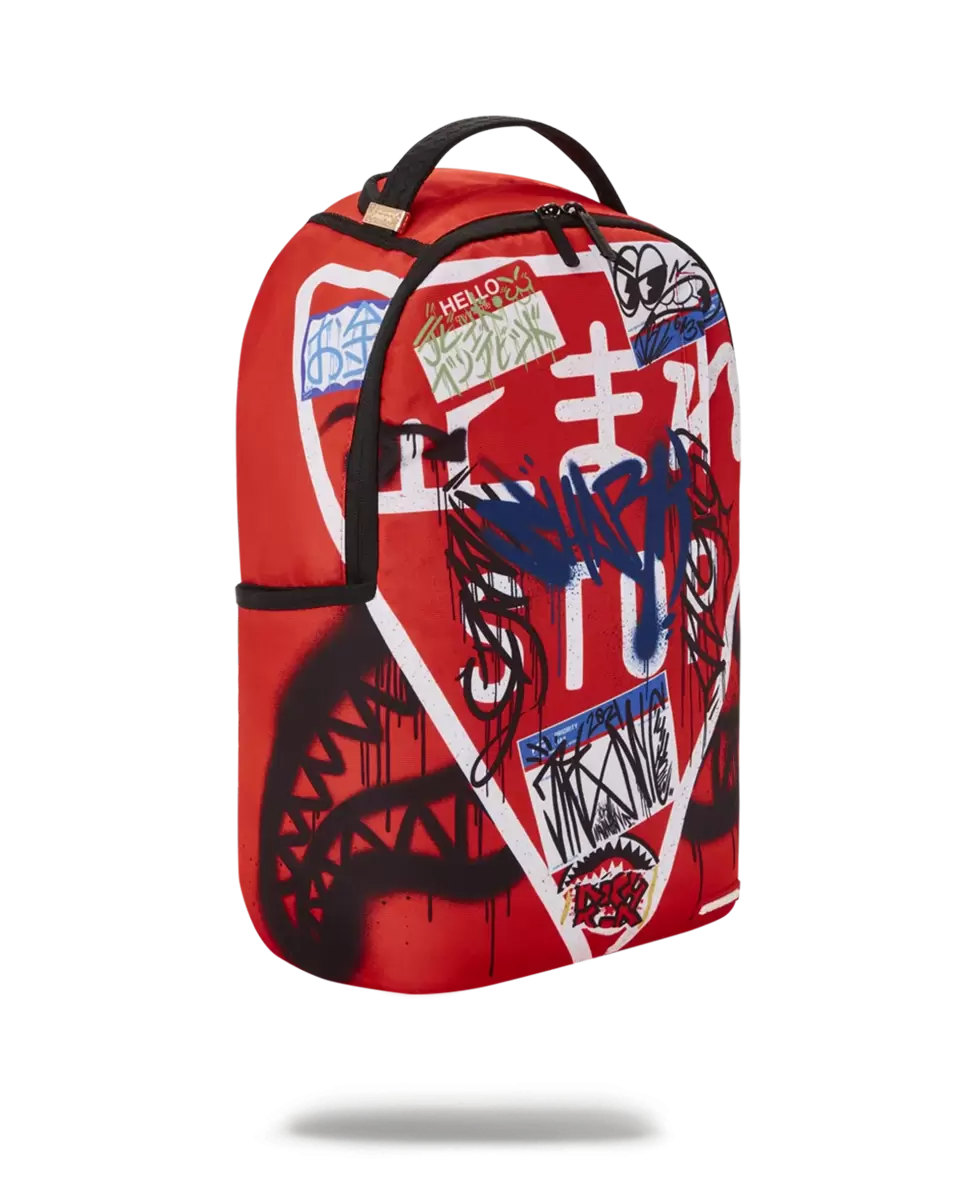 Dimensions: 18″ x 6″ x 11.5″ Front zipper pocket Side pockets Zippered Stash pocket Separate velour sunglass compartment Ergonomic mesh back padding Adjustable Straps for custom sizing Green zippers with metal hardware Metal “Sprayground Authentic” badge Slide through back sleeve connects to carry on luggage to free your hands