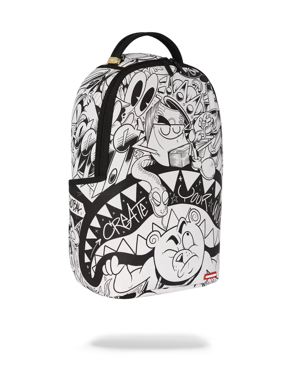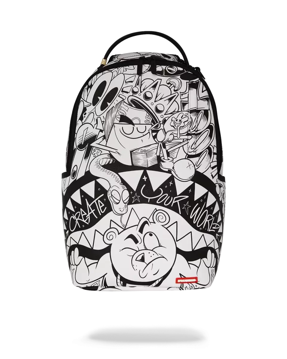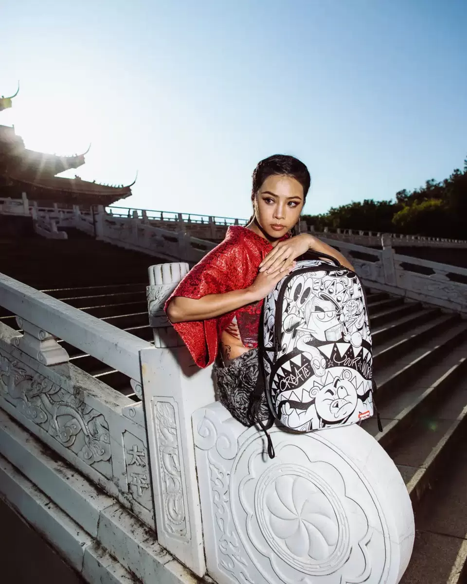 Dimensions: 18″ x 6″ x 11.5″ Front zipper pocket Side pockets Zippered Stash pocket Separate velour sunglass compartment Ergonomic mesh back padding Adjustable Straps for custom sizing Gold zippers with metal hardware Metal “Sprayground Authentic” badge Slide through back sleeve connects to carry-on luggage to free your hands