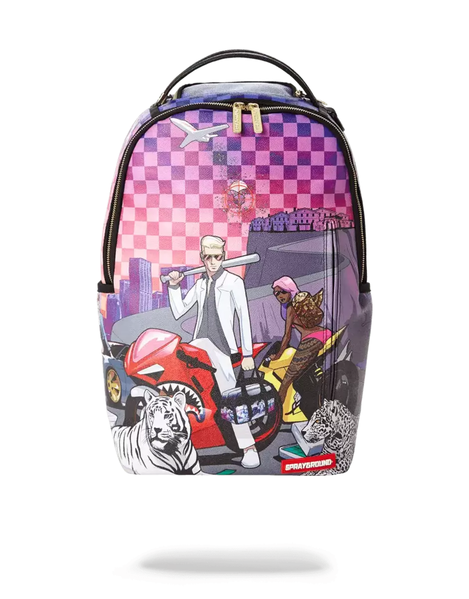 Dimensions: 18″ x 6″ x 11.5″ Front zipper pocket Side pockets Zippered Stash pocket Ergonomic mesh back padding Adjustable Straps for custom sizing Nylon Zippers with Metal Hardware Metal “Sprayground Authentic” badge Slide through back sleeve connects to Carry on luggage to free your hands