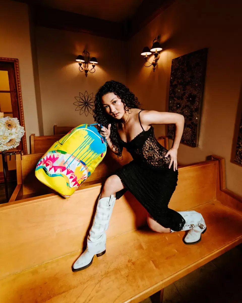 Dimensions: 18″ x 6″ x 11.5″ Front zipper pocket Side pockets Zippered Stash pocket Separate velour sunglass compartment Ergonomic mesh back padding Adjustable Straps for custom sizing Gold zippers with metal hardware Metal “Sprayground Authentic” badge Slide through back sleeve connects to carry-on luggage to free your hands