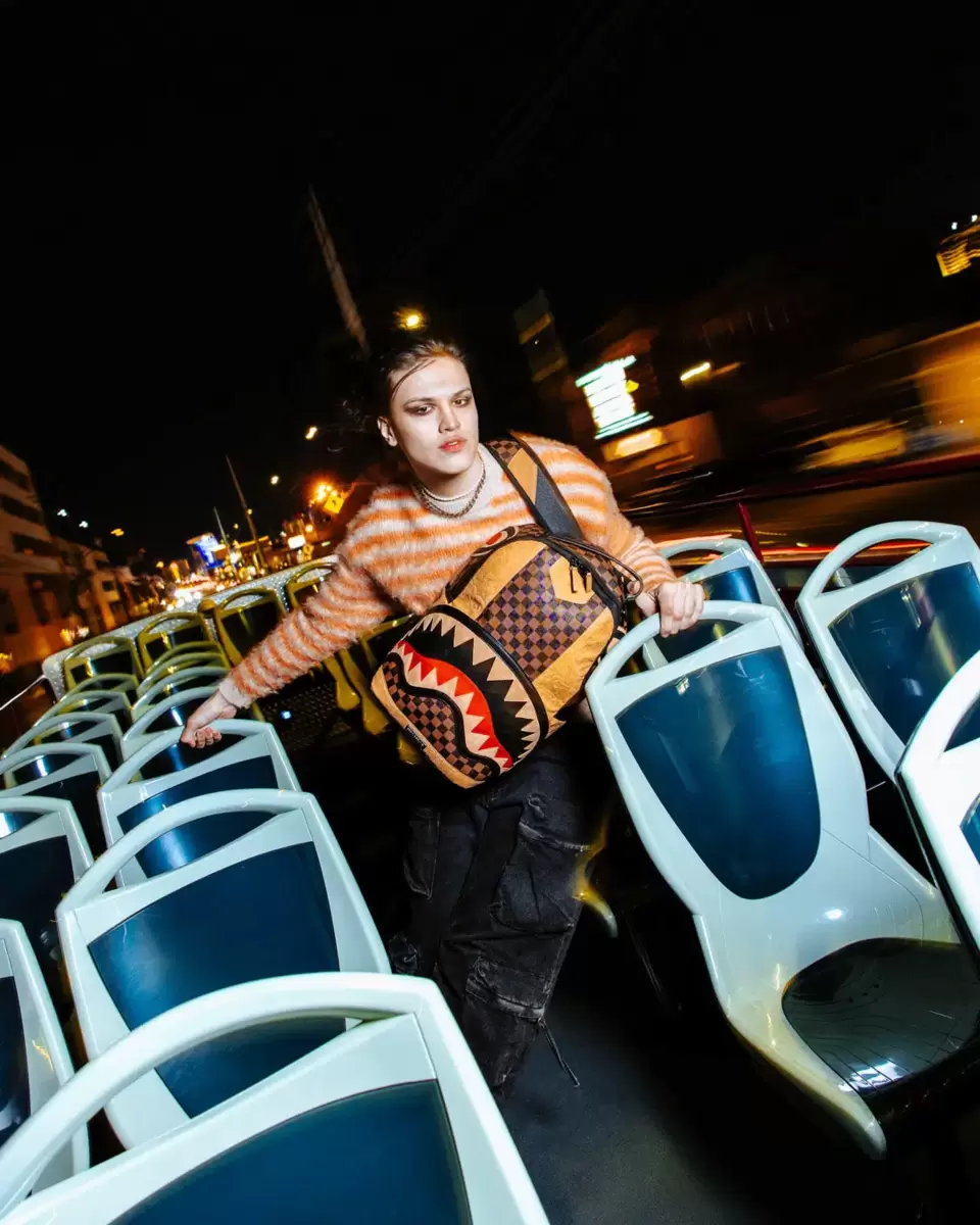Dimensions: 18″ x 6″ x 11.5″ Front zipper pocket Side pockets Zippered Stash pocket Separate velour sunglass compartment Ergonomic mesh back padding Adjustable Straps for custom sizing Gold zippers with metal hardware Metal “Sprayground Authentic” badge Slide through back sleeve connects to carry-on luggage to free your hands