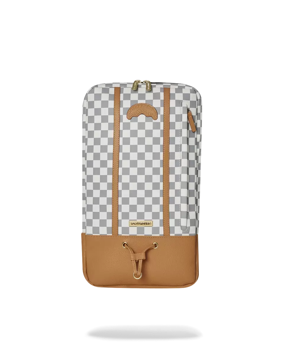 Ergonomic mesh back padding, Whip stitch detailing, adjustable straps, 2 exterior pockets, features a whip stitch luggage tag, embossed zipper pulls
