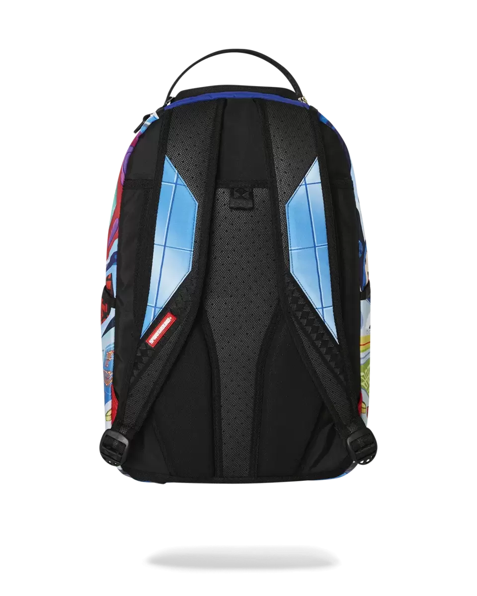 Dimensions: 18″ x 6″ x 11.5″ Front zipper pocket Side pockets Zippered Stash pocket Separate velour sunglass compartment Ergonomic mesh back padding Adjustable Straps for custom sizing Gold zippers with metal hardware Metal “Sprayground Authentic” badge Slide through back sleeve connects to carry-on luggage to free your hands