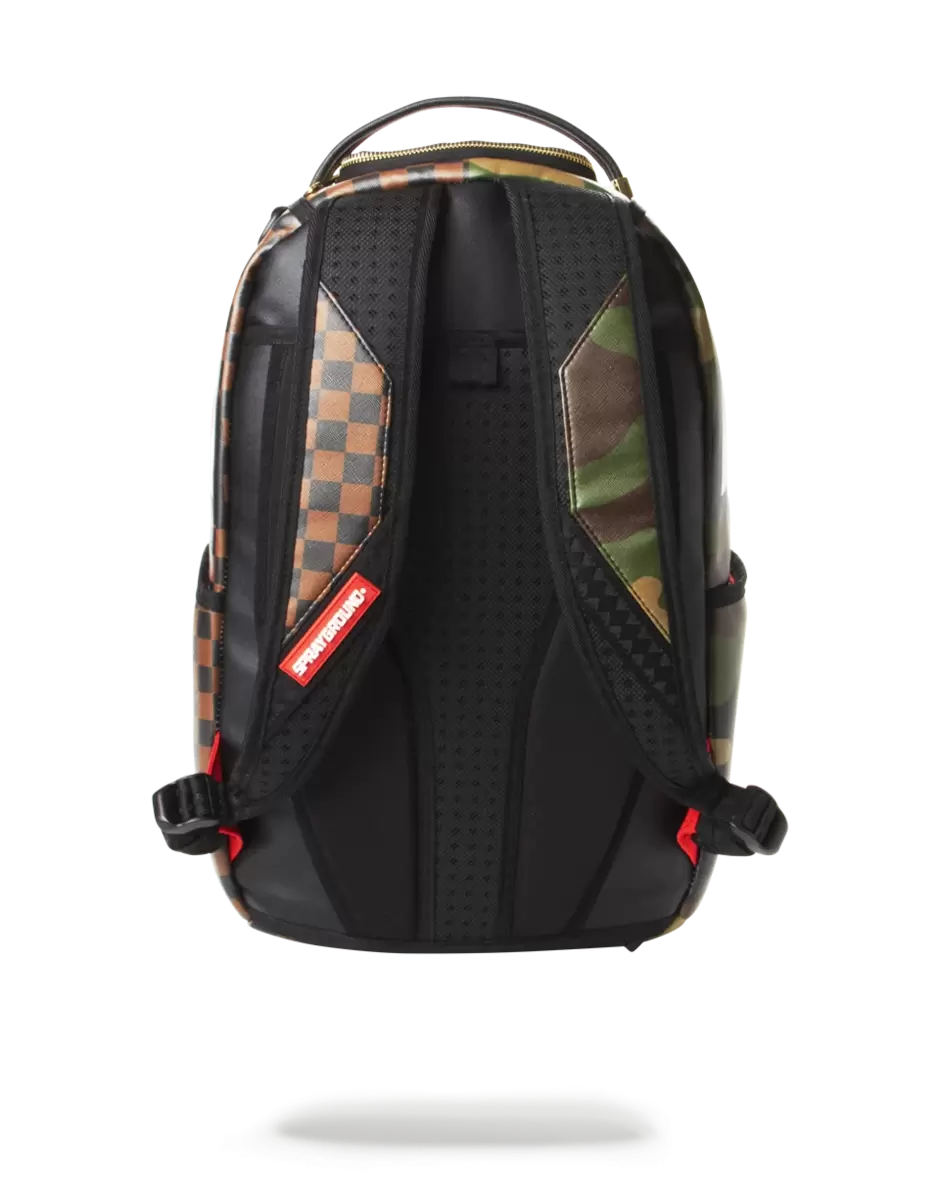 Dimensions: 18″ x 6″ x 11.5″ Front zipper pocket Side pockets Zippered Stash pocket Separate velour sunglass compartment Ergonomic mesh back padding Adjustable Straps for custom sizing Gold and silver zippers with metal hardware Metal “Sprayground Authentic” badge Slide through back sleeve connects to carry-on luggage to free your hands