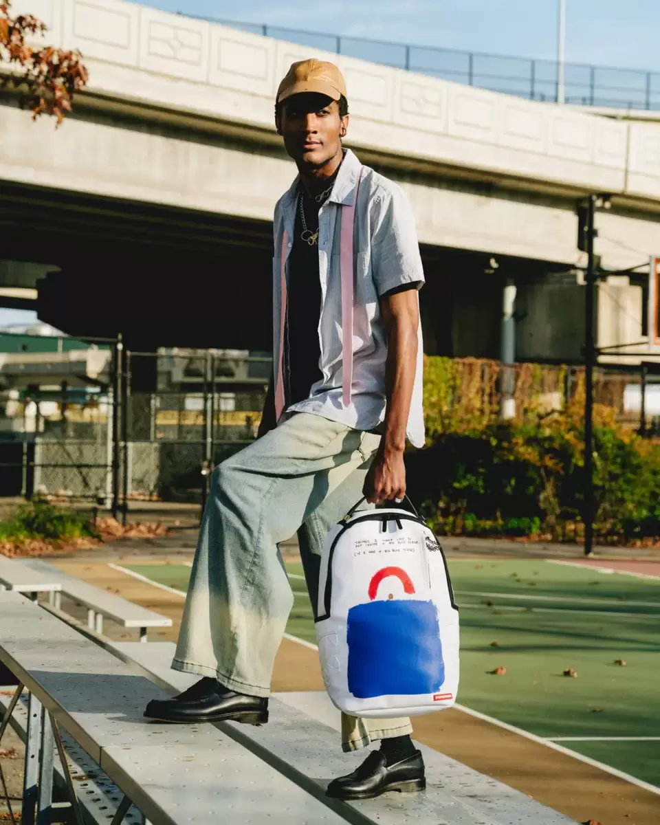 Dimensions: 18″ x 6″ x 11.5″ Front zipper pocket Side pockets Zippered Stash pocket Separate velour sunglass compartment Ergonomic mesh back padding Adjustable Straps for custom sizing Gold zippers with metal hardware Metal “Sprayground Authentic” badge Slide through back sleeve connects to carry-on luggage to free your hands