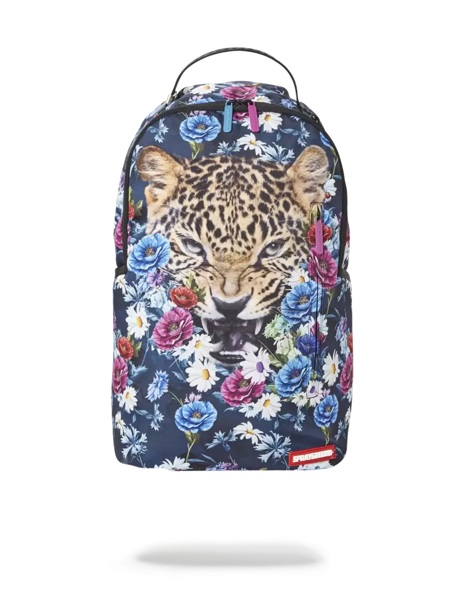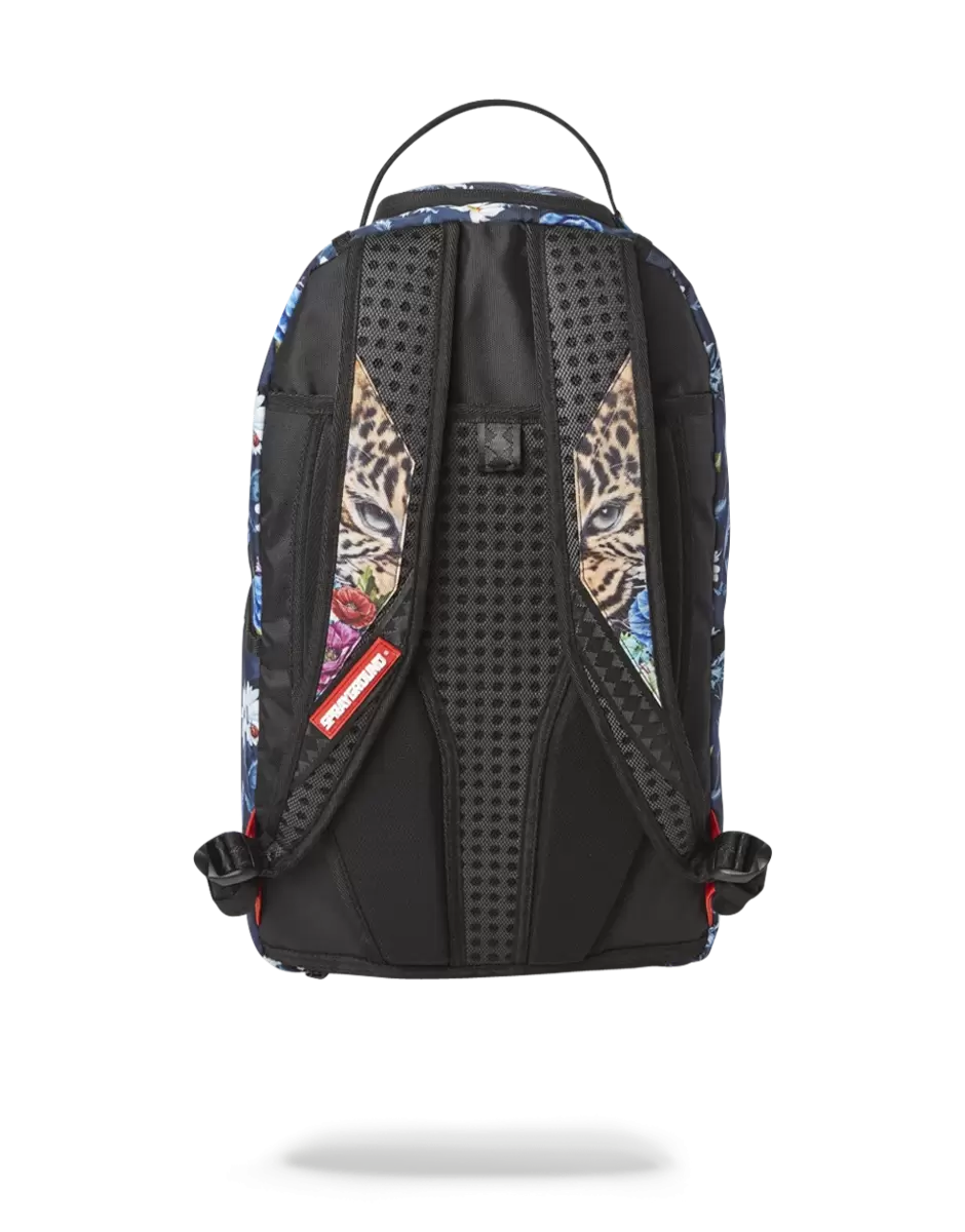 Dimensions: 18″ x 6″ x 11.5″ Front zipper pocket Side pockets Zippered Stash pocket Separate velour sunglass compartment Ergonomic mesh back padding Adjustable Straps for custom sizing Blue and pink zippers with metal hardware Metal “Sprayground Authentic” badge Slide through back sleeve connects to carry-on luggage to free your hands