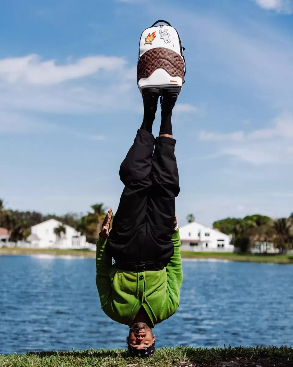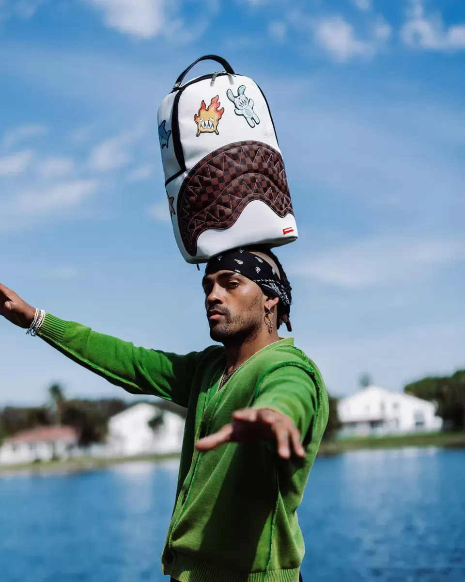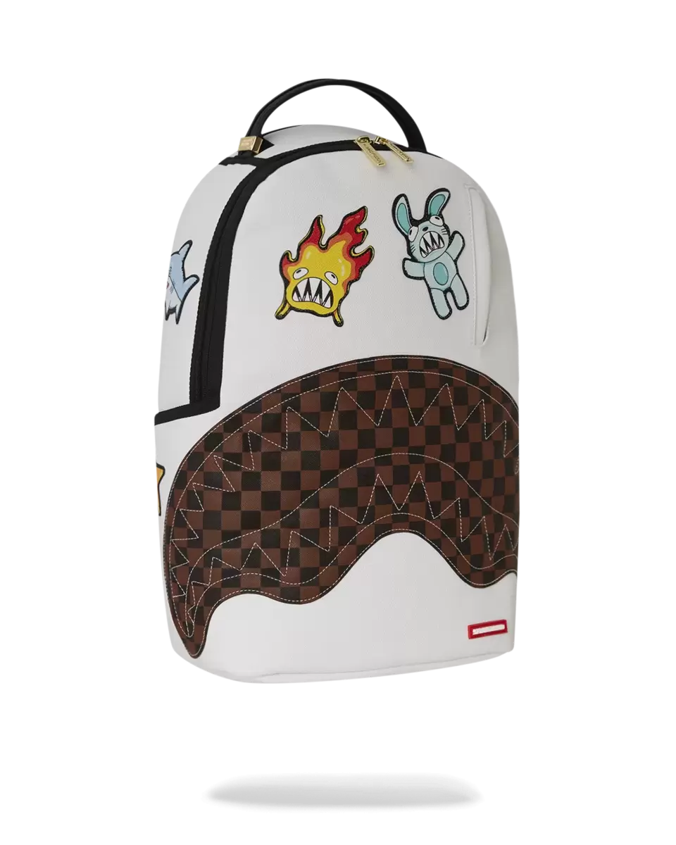 Dimensions: 18″ x 6″ x 11.5″ Front zipper pocket Side pockets Zippered Stash pocket Separate velour sunglass compartment Ergonomic mesh back padding Adjustable Straps for custom sizing Gold zippers with metal hardware Metal “Sprayground Authentic” badge Slide through back sleeve connects to carry-on luggage to free your hands