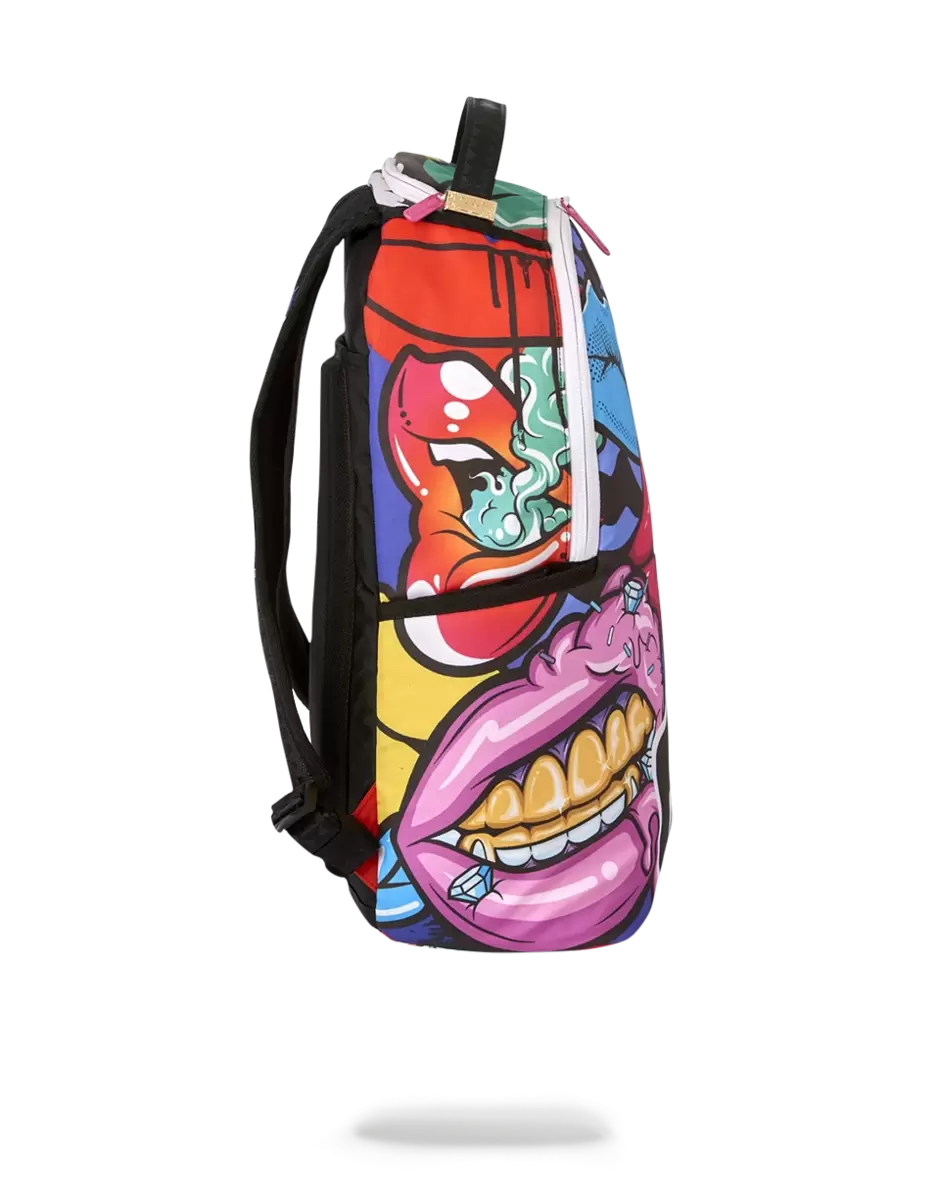 Dimensions: 18″ x 6″ x 11.5″ Front zipper pocket Side pockets Zippered Stash pocket Separate velour sunglass compartment Ergonomic mesh back padding Adjustable Straps for custom sizing Pink zippers with metal hardware Metal “Sprayground Authentic” badge Slide through back sleeve connects to carry-on luggage to free your hands