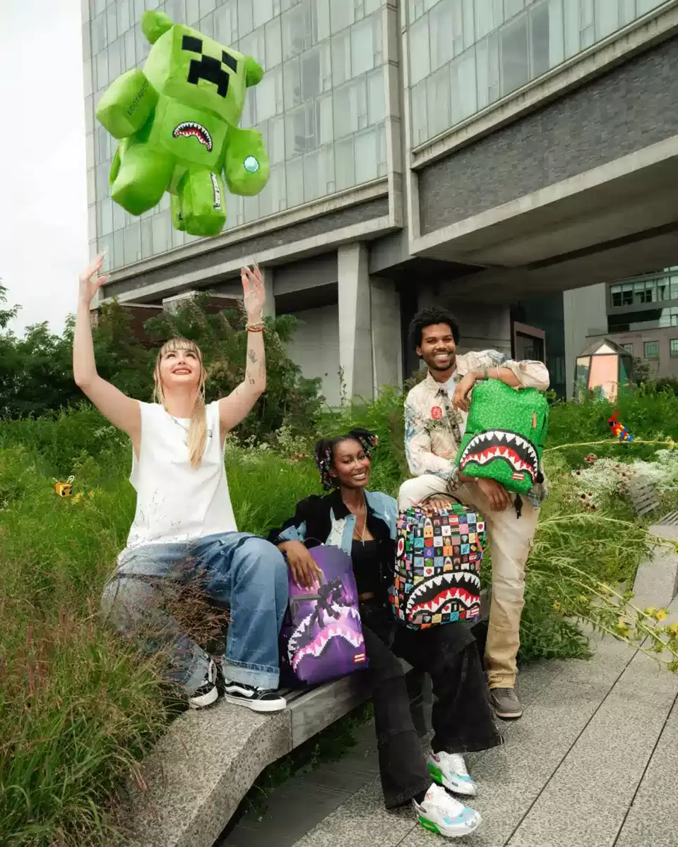 OFFICIAL COLLAB WITH MINECRAFT Pixelated edges Exterior Dimensions 18, x 6, x 11.5, Front zipper pocket, Side pockets, Zippered Stash pocket, Separate velo