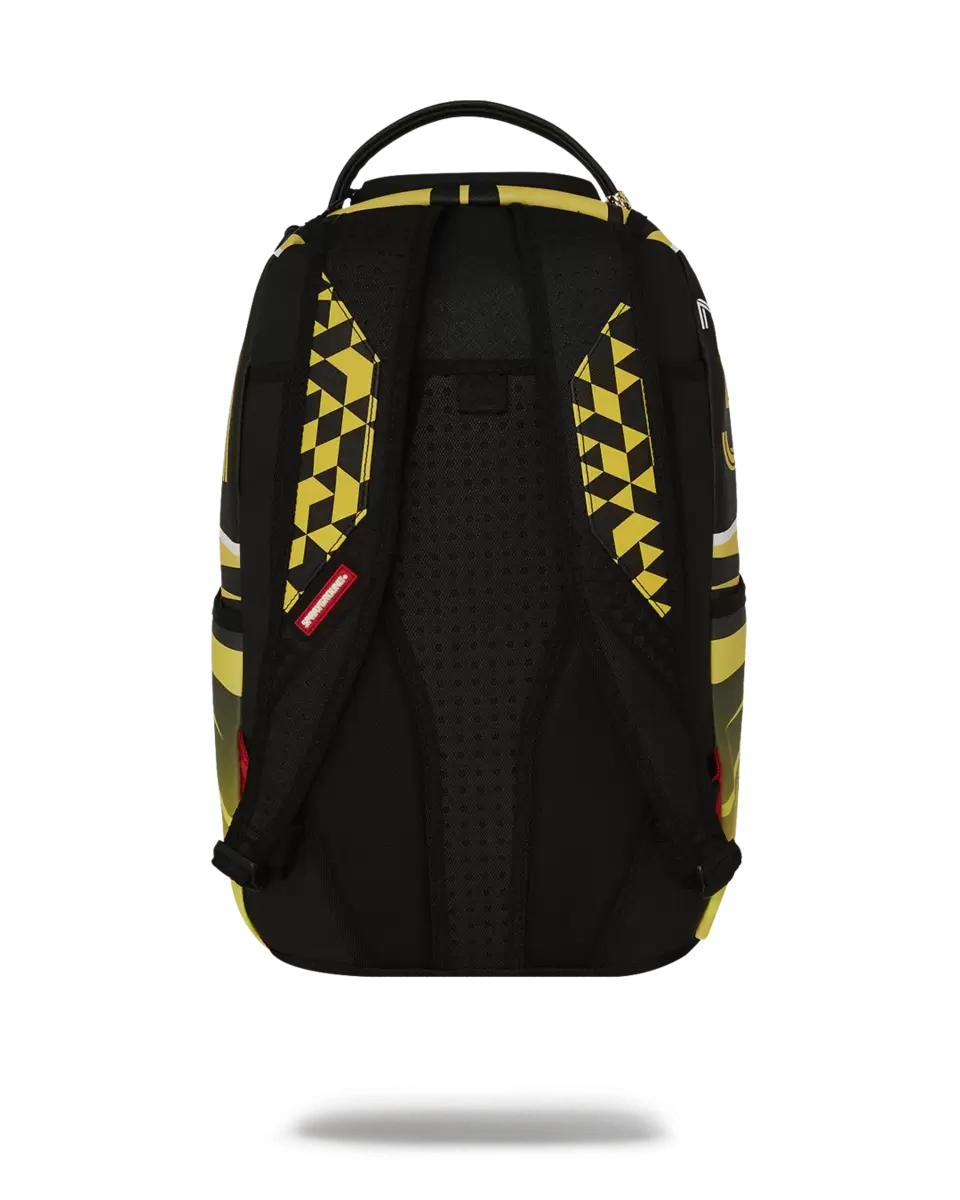 Dimensions: 18″ x 6″ x 11.5″ Front zipper pocket Side pockets Zippered Stash pocket Separate velour sunglass compartment Ergonomic mesh back padding Adjustable Straps for custom sizing Gold zippers with metal hardware Metal “Sprayground Authentic” badge Slide through back sleeve connects to carry-on luggage to free your hands