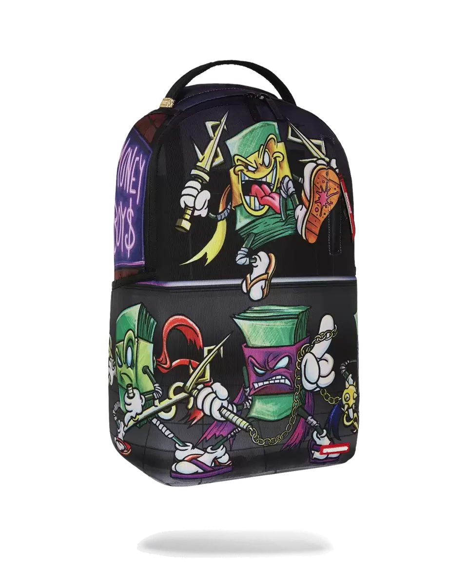Dimensions: 18″ x 6″ x 11.5″ Front zipper pocket Side pockets Zippered Stash pocket Separate velour sunglass compartment Ergonomic mesh back padding Adjustable Straps for custom sizing Gold zippers with metal hardware Metal “Sprayground Authentic” badge Slide through back sleeve connects to carry-on luggage to free your hands