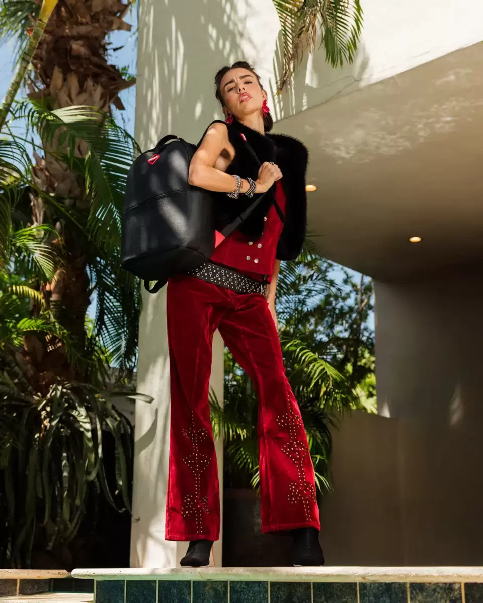 Dimensions: 18″ x 6″ x 11.5″ Front zipper pocket Side pockets Zippered Stash pocket Separate velour sunglass compartment Ergonomic mesh back padding Adjustable Straps for custom sizing Gold zippers with metal hardware Metal “Sprayground Authentic” badge Slide through back sleeve connects to carry-on luggage to free your hands