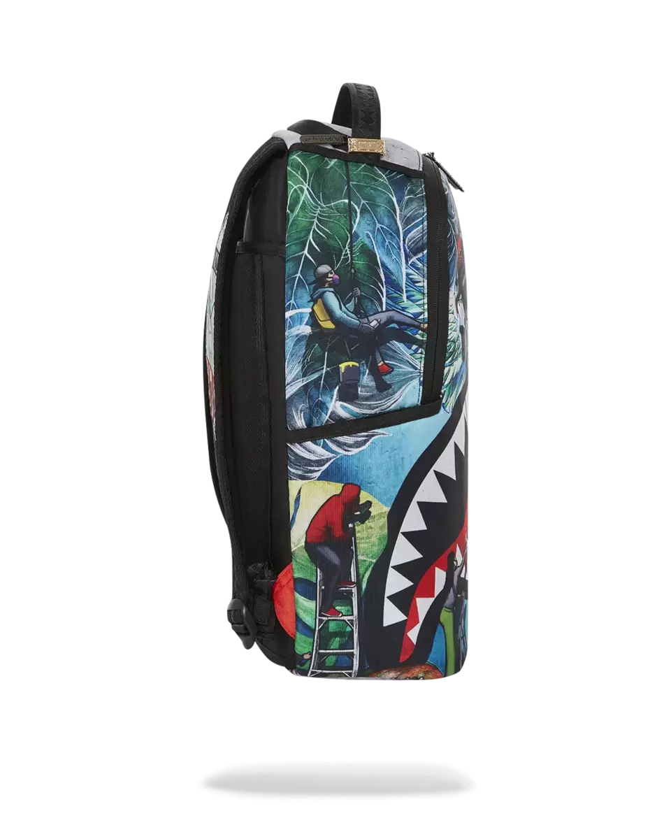 Dimensions: 18″ x 6″ x 11.5″ Front zipper pocket Side pockets Zippered Stash pocket Separate velour sunglass compartment Ergonomic mesh back padding Adjustable Straps for custom sizing Gold zippers with metal hardware Metal “Sprayground Authentic” badge Slide through back sleeve connects to carry-on luggage to free your hands
