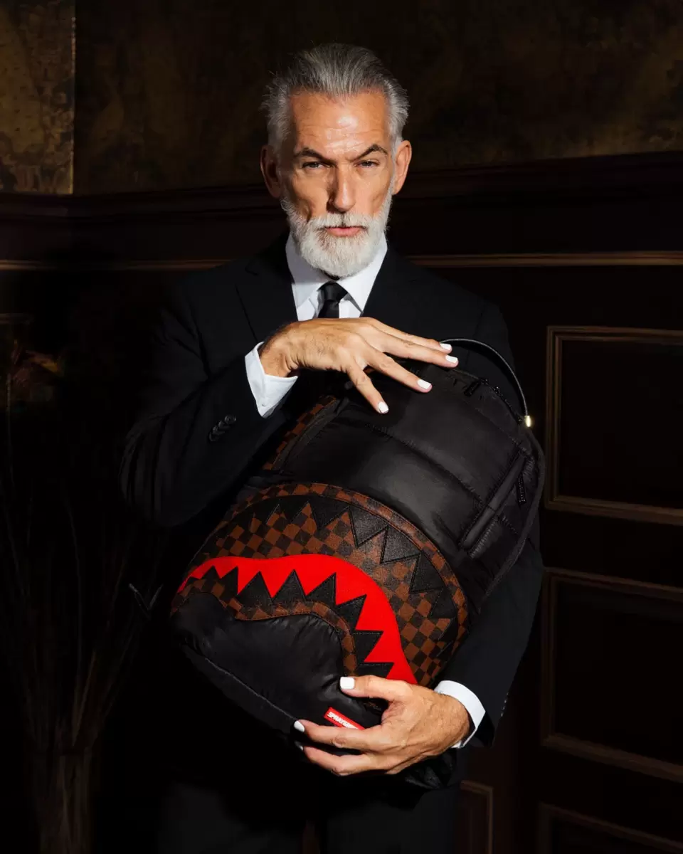 Dimensions: 18″ x 6″ x 11.5″ Front zipper pocket Side pockets Zippered Stash pocket Separate velour sunglass compartment Ergonomic mesh back padding Adjustable Straps for custom sizing Gold zippers with metal hardware Metal “Sprayground Authentic” badge Slide through back sleeve connects to carry-on luggage to free your hands