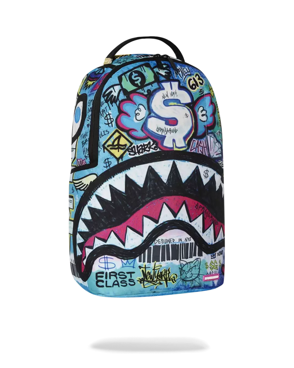 Dimensions: 18″ x 6″ x 11.5″ Front zipper pocket Side pockets Zippered Stash pocket Separate velour sunglass compartment Ergonomic mesh back padding Adjustable Straps for custom sizing Gold zippers with metal hardware Metal “Sprayground Authentic” badge Slide through back sleeve connects to carry-on luggage to free your hands