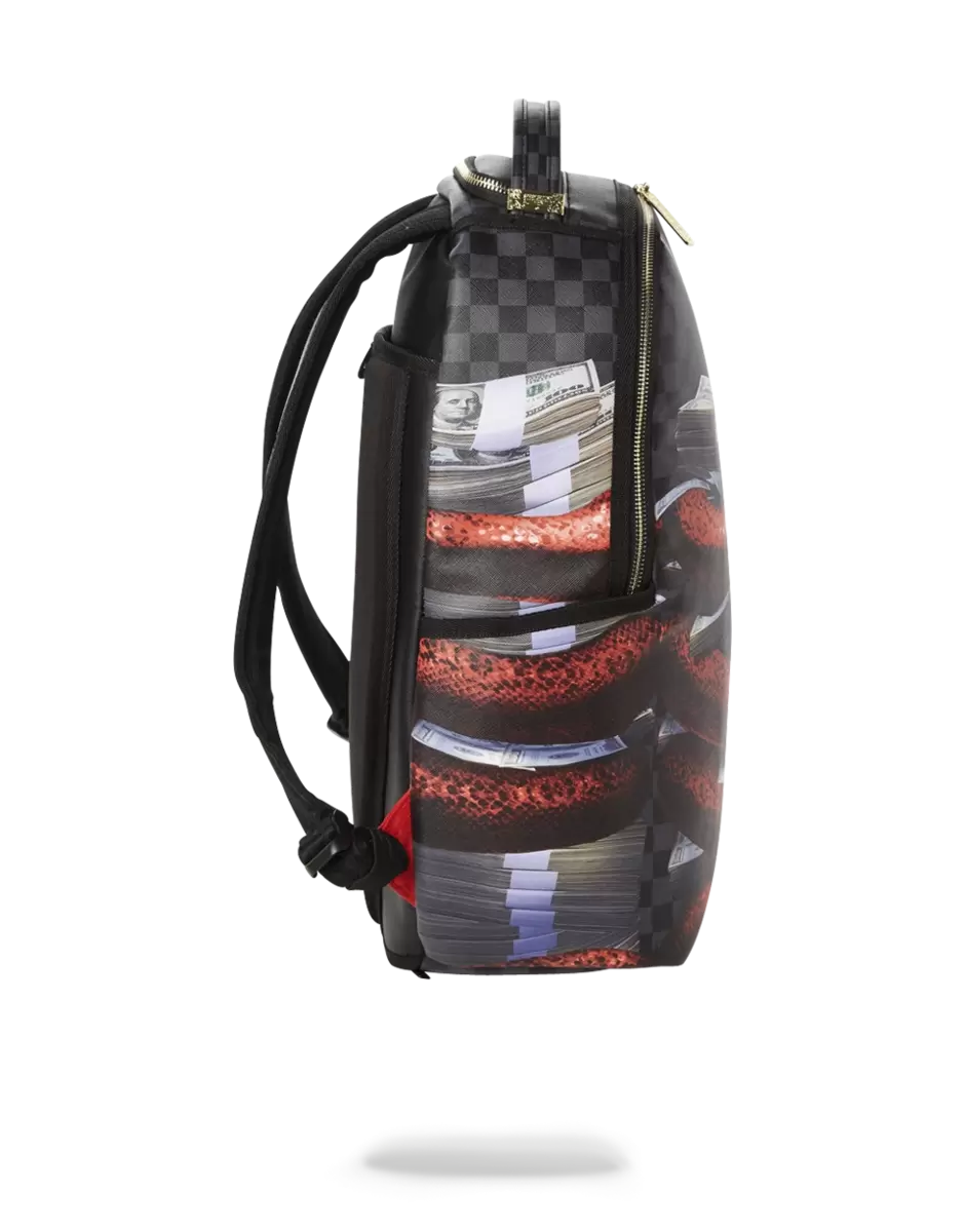 Dimensions: 18″ x 6″ x 11.5″ Front zipper pocket Side pockets Zippered Stash pocket Separate velour sunglass compartment Ergonomic mesh back padding Adjustable Straps for custom sizing Gold zippers with metal hardware Metal “Sprayground Authentic” badge Slide through back sleeve connects to carry-on luggage to free your hands