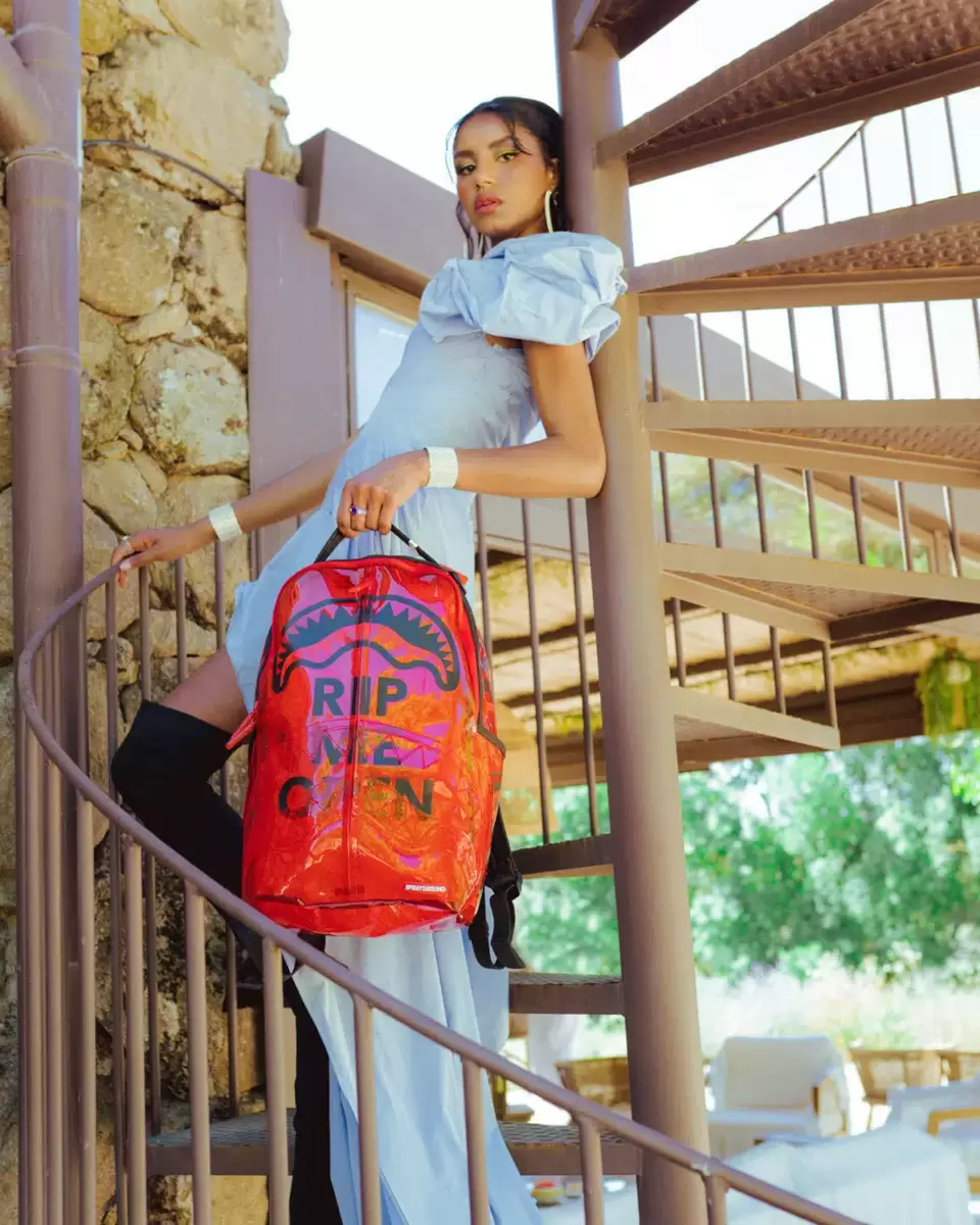 Dimensions: 18″ x 6″ x 11.5″ Front zipper pocket Side pockets Zippered Stash pocket Separate velour sunglass compartment Ergonomic mesh back padding Adjustable Straps for custom sizing Gold zippers with metal hardware Metal “Sprayground Authentic” badge Slide through back sleeve connects to carry-on luggage to free your hands