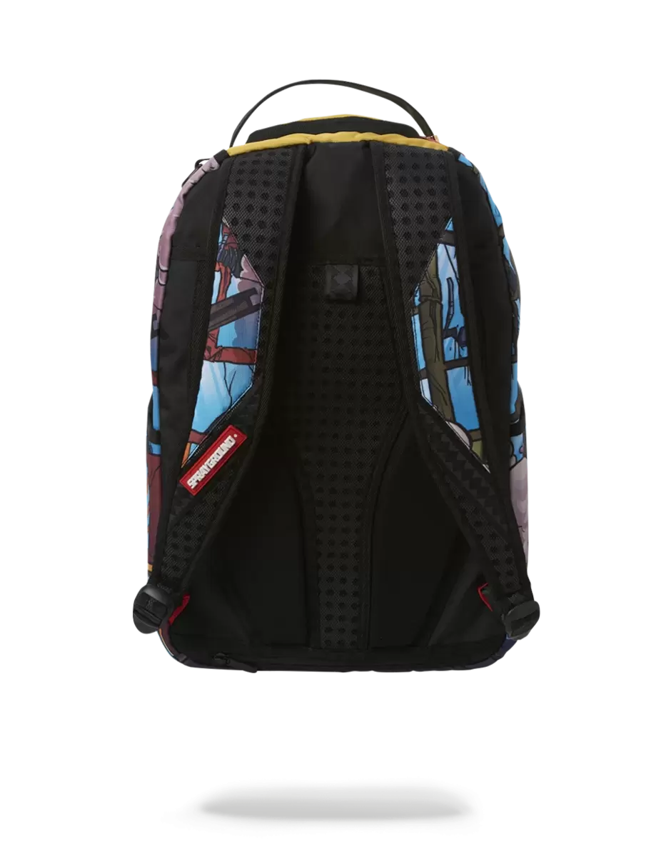 Dimensions: 18″ x 6″ x 11.5″ Front zipper pocket Side pockets Zippered Stash pocket Separate velour sunglass compartment Ergonomic mesh back padding Adjustable Straps for custom sizing Yellow green zippers with metal hardware Metal “Sprayground Authentic” badge Slide through back sleeve connects to carry-on luggage to free your hands