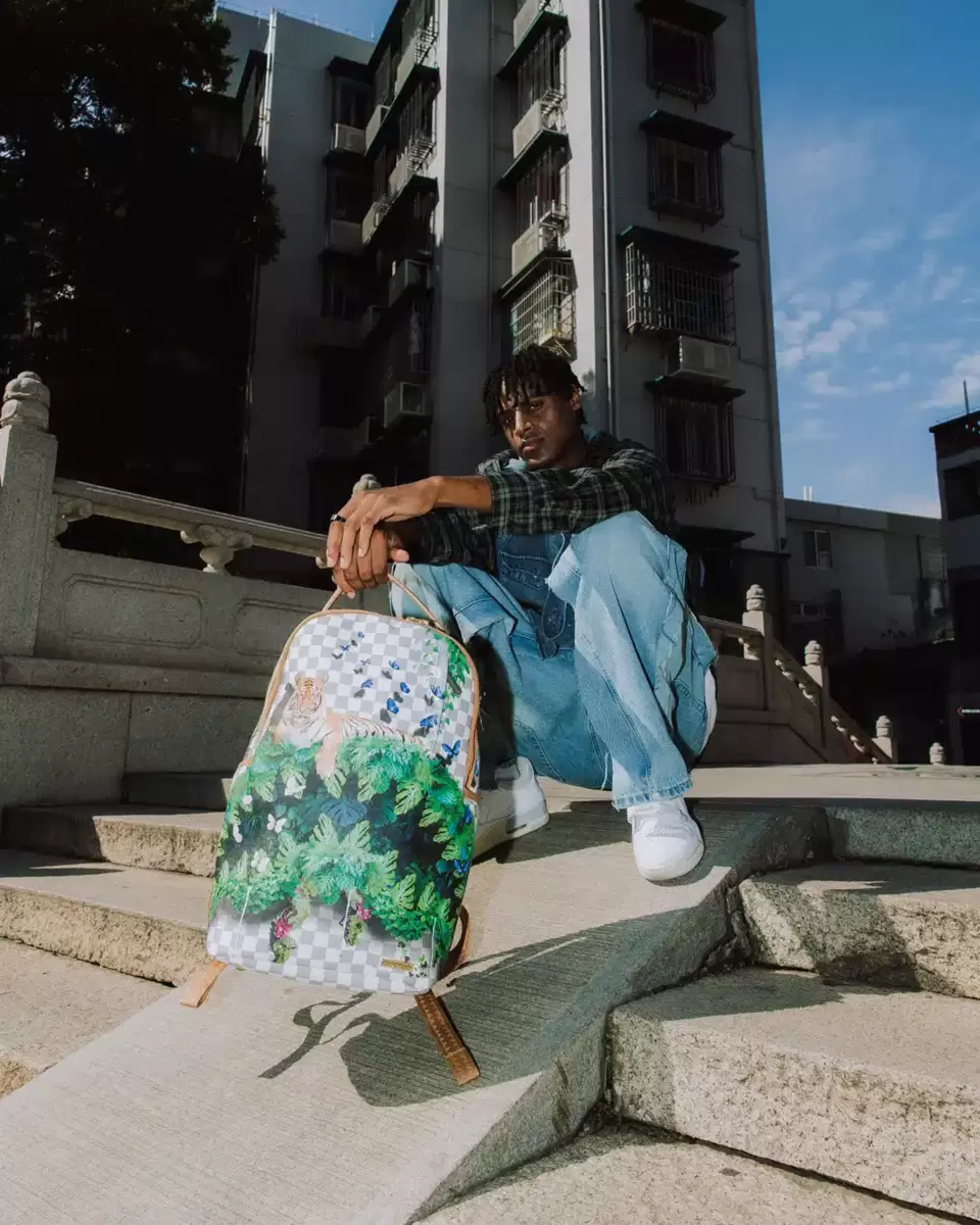 Dimensions: 18″ x 6″ x 11.5″ Front zipper pocket Side pockets Zippered Stash pocket Separate velour sunglass compartment Ergonomic mesh back padding Adjustable Straps for custom sizing Gold zippers with metal hardware Metal “Sprayground Authentic” badge Slide through back sleeve connects to carry-on luggage to free your hands