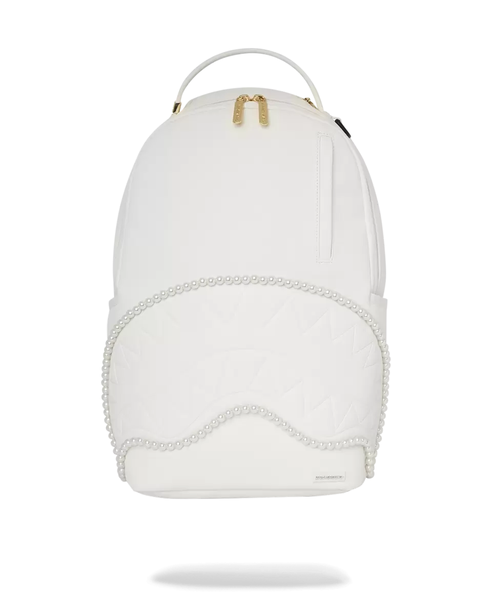 100% PVC embossed sharkmouth embellished with faux pearls featuring gold hardware