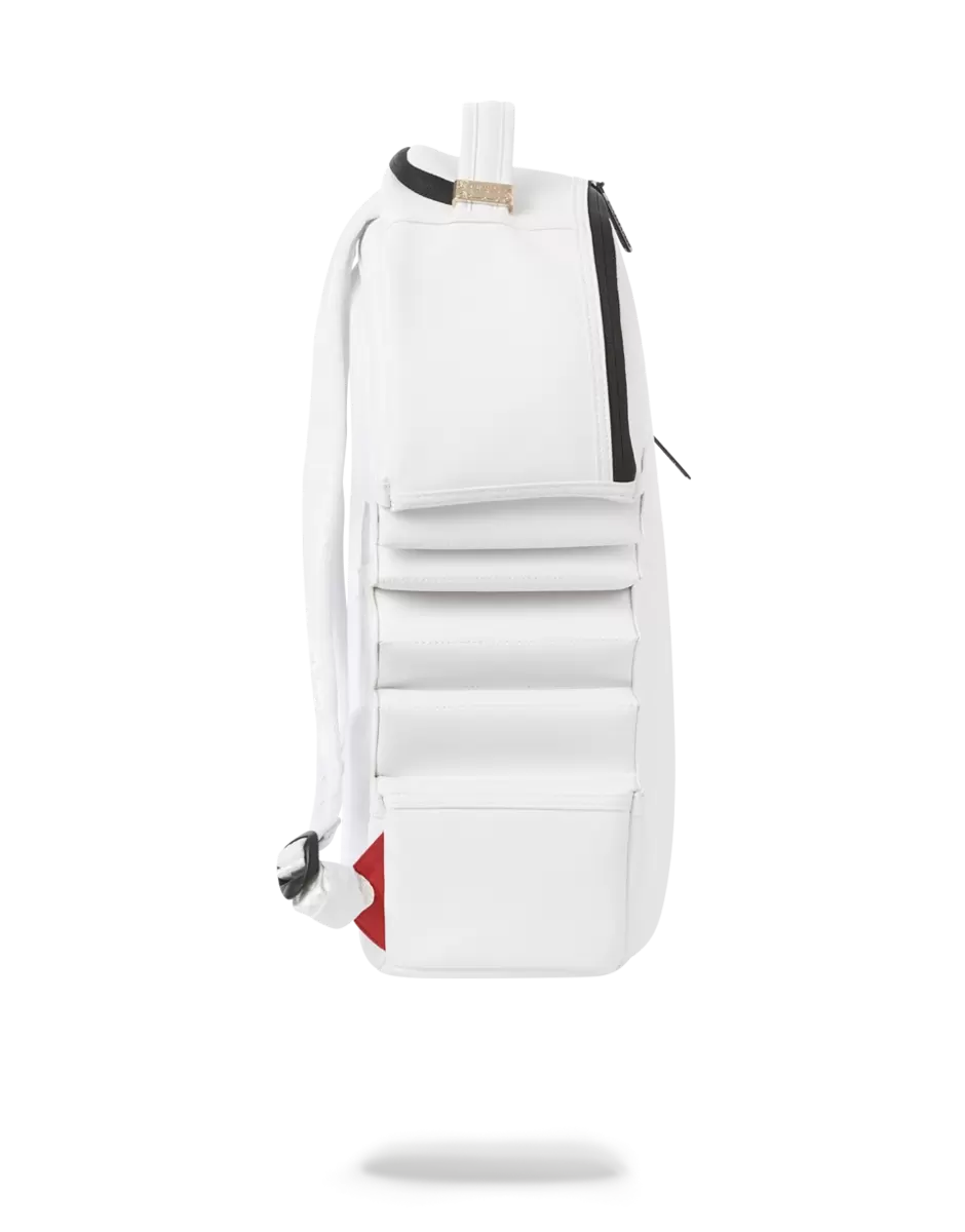 Dimensions: 18″ x 6″ x 11.5″ Front zipper pocket Side pockets Zippered Stash pocket Separate velour sunglass compartment Ergonomic mesh back padding Adjustable Straps for custom sizing Black zippers with metal hardware Metal “Sprayground Authentic” badge Slide through back sleeve connects to carry-on luggage to free your hands
