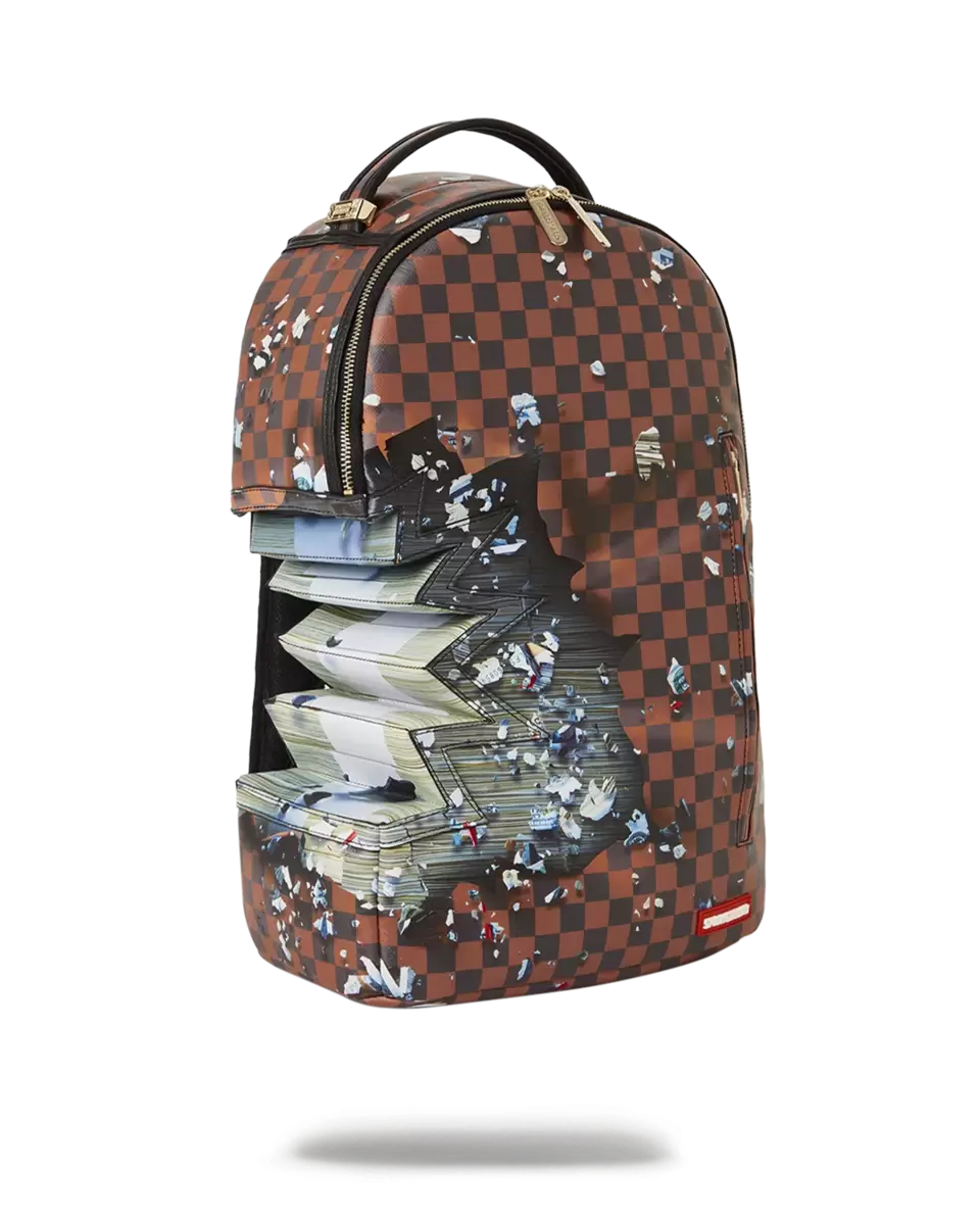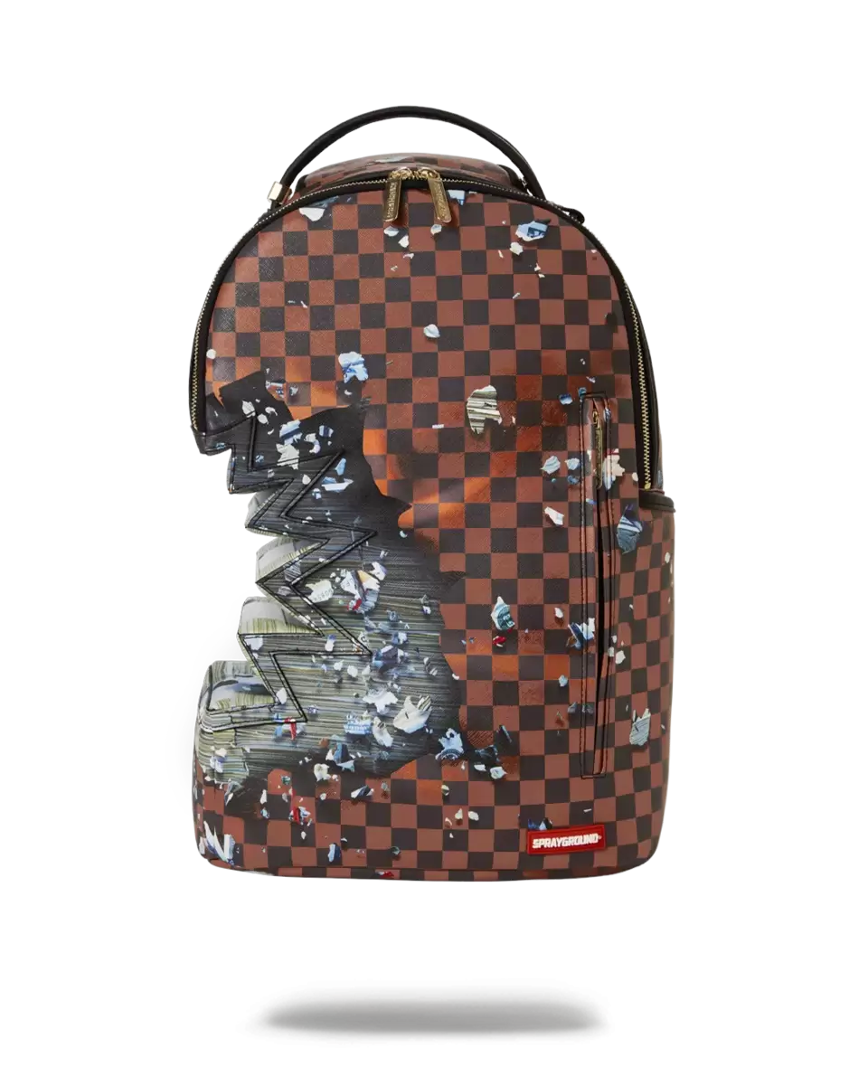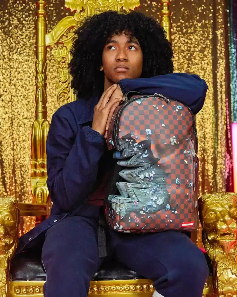 Dimensions: 18″ x 6″ x 11.5″ Front zipper pocket Side pockets Zippered Stash pocket Separate velour sunglass compartment Ergonomic mesh back padding Adjustable Straps for custom sizing Gold zippers with metal hardware Metal “Sprayground Authentic” badge Slide through back sleeve connects to carry-on luggage to free your hands