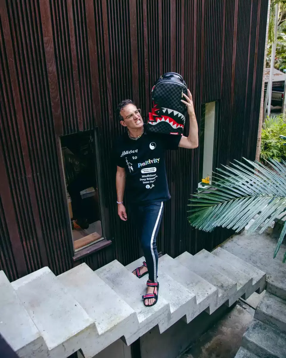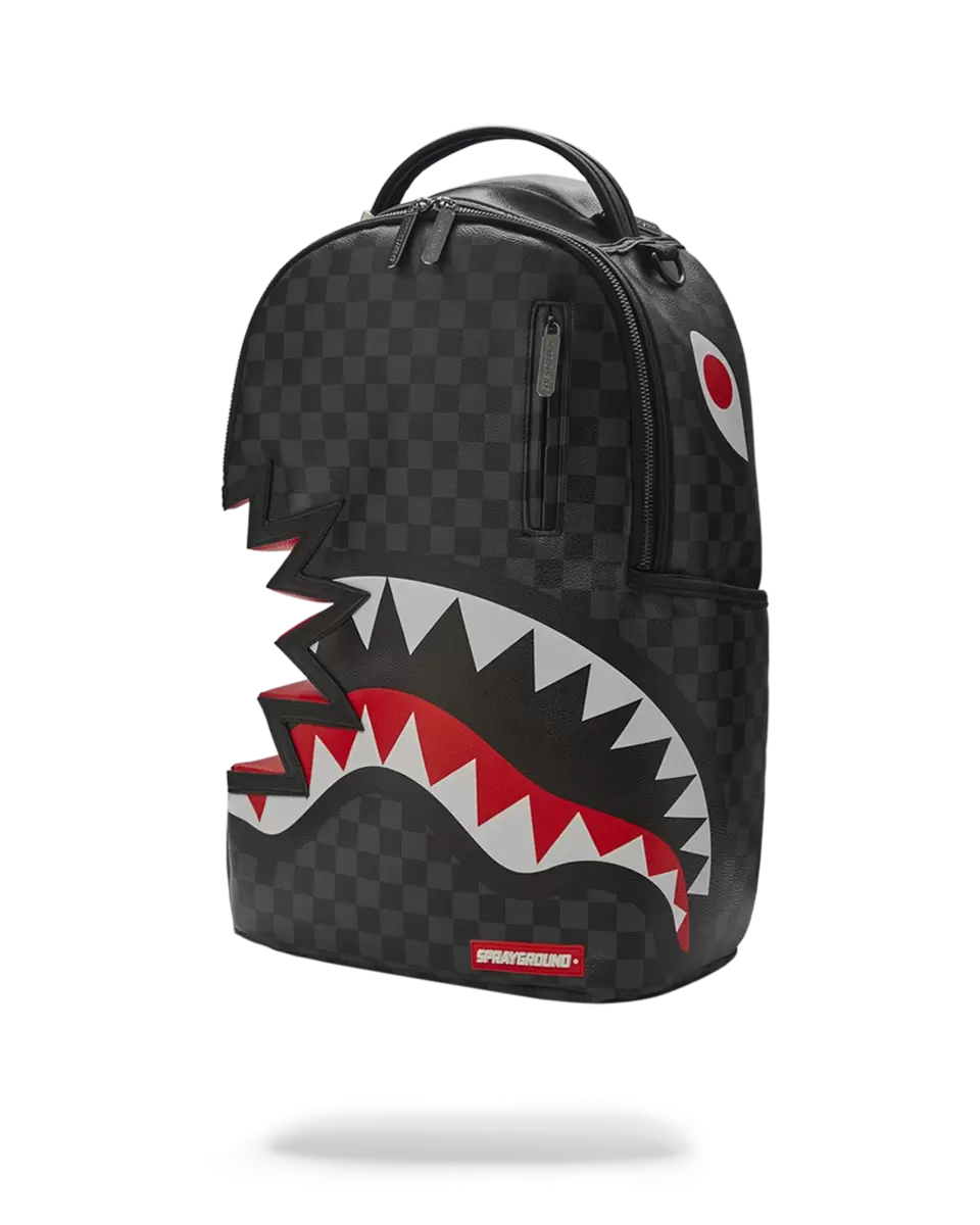 Dimensions: 18″ x 6″ x 11.5″ Front zipper pocket Side pockets Zippered Stash pocket Separate velour sunglass compartment Ergonomic mesh back padding Adjustable Straps for custom sizing Gold zippers with metal hardware Metal “Sprayground Authentic” badge Slide through back sleeve connects to carry-on luggage to free your hands