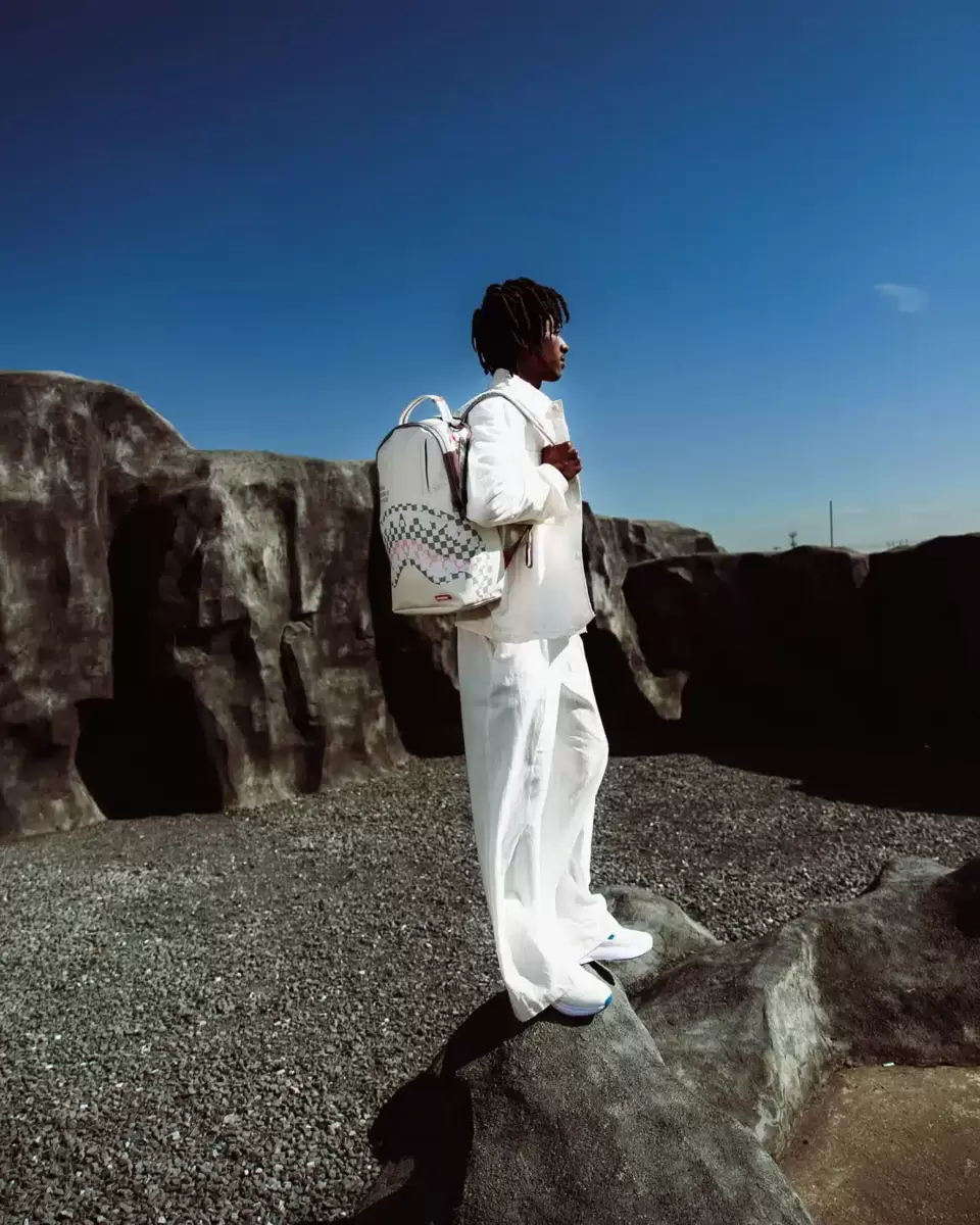 Dimensions: 18″ x 6″ x 11.5″ Front zipper pocket Side pockets Zippered Stash pocket Separate velour sunglass compartment Ergonomic mesh back padding Adjustable Straps for custom sizing Gold zippers with metal hardware Metal “Sprayground Authentic” badge Slide through back sleeve connects to carry-on luggage to free your hands
