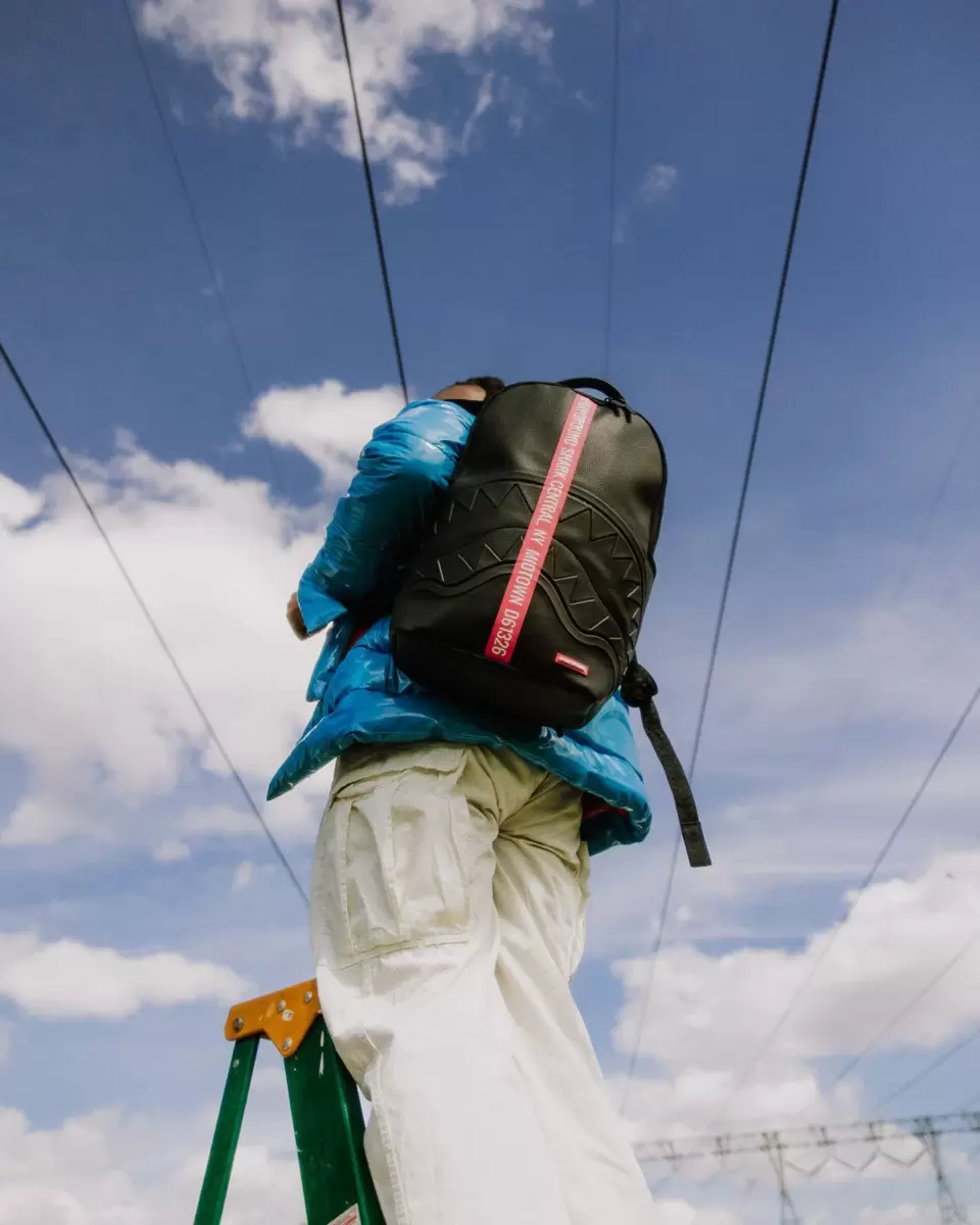 Dimensions: 18″ x 6″ x 11.5″ Front zipper pocket Side pockets Zippered Stash pocket Separate velour sunglass compartment Ergonomic mesh back padding Adjustable Straps for custom sizing Gold zippers with metal hardware Metal “Sprayground Authentic” badge Slide through back sleeve connects to carry-on luggage to free your hands