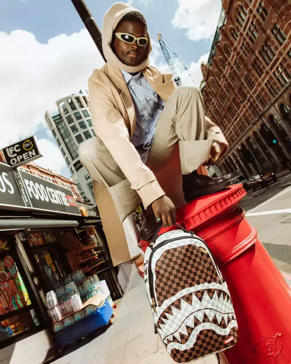 Dimensions: 18″ x 6″ x 11.5″ Front zipper pocket Side pockets Zippered Stash pocket Separate velour sunglass compartment Ergonomic mesh back padding Adjustable Straps for custom sizing Gold zippers with metal hardware Metal “Sprayground Authentic” badge Slide through back sleeve connects to carry-on luggage to free your hands