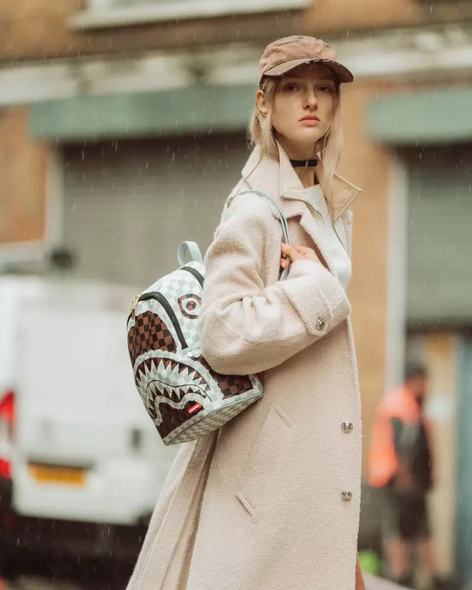 Dimensions: 10″ x 5″ x 11.5″ Two large main zippered compartments Side pockets Zippered Stash pocket Adjustable straps for custom sizing Gold zippers with metal hardware